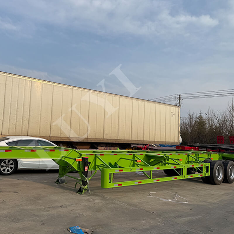 Der zweiachsige, lasttragende Container-Skelett-Sattelauflieger Luyi stammt aus der chinesischen Provinz Shandong und ist ein effizientes Transportgerät, das speziell für LKWs entwickelt wurde und dessen Kernfunktion auf dem sicheren Transport von Containern liegt.