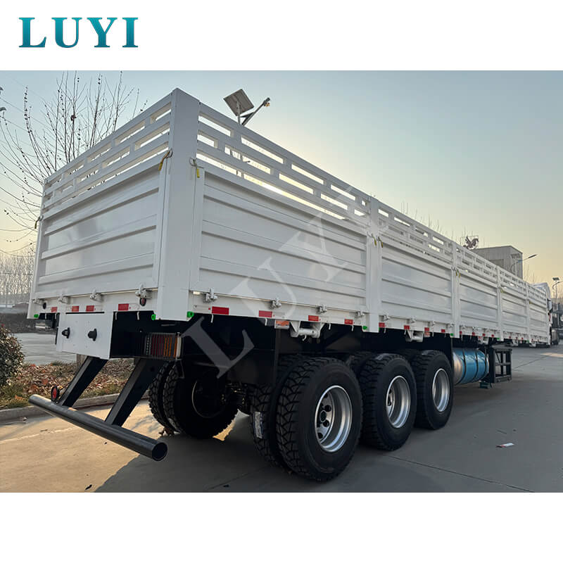 Der 3-achsige 1,5-m-Seitenbrett-Sattelauflieger von Luyi Vehicles stammt aus der chinesischen Provinz Shandong und ist ein Hochleistungs-Frachtsattelauflieger, der für den Schwerlasttransport konzipiert ist. Er ist aus hochwertigem Stahl gefertigt, hat eine feste Größe von 1250025001200 mm und eine maximale effektive Nutzlast von 80 Tonnen und wird damit den Anforderungen für den Transport schwerer Güter voll und ganz gerecht.