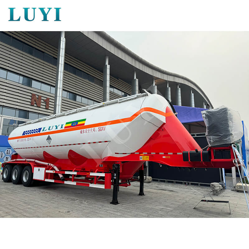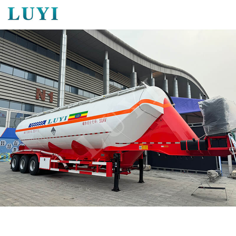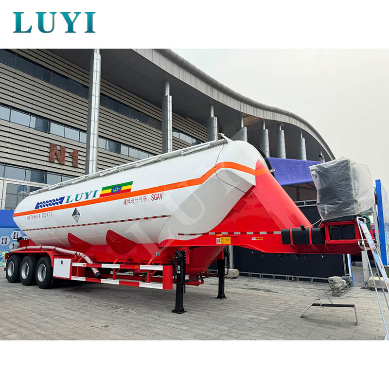 Der aus China stammende 3-achsige vertikale Zementtank-Sattelauflieger der Marke „Luyi“ ist ein brandneuer Schwerlast-Sattelauflieger, der speziell für den Transport von Massenzement und anderen pulverförmigen und körnigen Materialien entwickelt wurde. Mit einer Tankkapazität von 35–40 Kubikmetern und einer hohen Tragfähigkeit von 50 Tonnen kann er eine große Menge an Materialien auf einmal laden, wodurch die Transporthäufigkeit reduziert und die Betriebseffizienz erheblich verbessert wird.