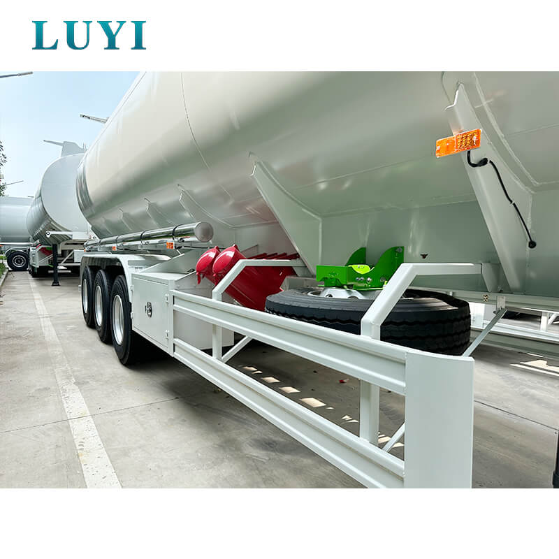 Es bietet optional 2/3/4 Achsen, alle ausgestattet mit bekannten Marken wie BPW oder Fuhua. Kombiniert mit 12R22,5-Reifen und zwei Federungsoptionen (mechanische Federung und Luftfederung) garantiert es stabiles Fahren. Zur Erhöhung der Transportsicherheit ist außerdem die Zweileitungsbremsanlage eingebaut. Der Achsschenkelbolzen übernimmt die Marke JOST und ist in den Spezifikationen 2 Zoll (50 mm) oder 3,5 Zoll (90 mm) erhältlich, um sich an verschiedene Traktoren anzupassen. Die Karosseriefarbe kann je nach Kundenwunsch angepasst werden. Mit professioneller Konfiguration und flexiblem Design bietet es eine zuverlässige Lösung für den Transport von Benzin und Diesel.