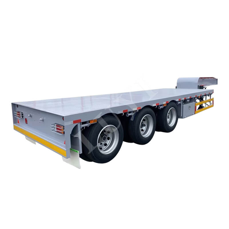 Der Anhänger bietet Abmessungen von 11500/12500/13000×3000×1750 mm, die auch individuell anpassbar sind. Es ist mit Blattfedern von 90 mm (Breite) × 13/16 mm (Dicke) × 10 Schichten ausgestattet, und Achsen können aus der 13/16-Tonnen-Marke FUWA ausgewählt werden, um einen stabilen und zuverlässigen Betrieb zu gewährleisten. Das Bremssystem nutzt Relaisventile für ein feinfühliges Ansprechverhalten; Der Achsschenkelbolzen entspricht der JOST-Spezifikation von 2 Zoll (50 mm) oder 3,5 Zoll (90 mm) und das Fahrwerk ist für eine einfache Bedienung mit dem 28-Tonnen-Fahrwerk von JOST mit zwei Geschwindigkeiten ausgestattet. Die Farben können an verschiedene Transportszenarien angepasst werden.