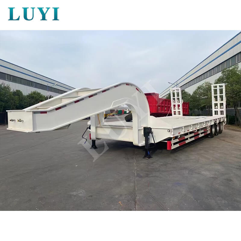 Der dreiachsige 40-Tonnen-Tieflader von LUYI, ein Hochleistungs-Schwerlasttransportfahrzeug aus Shandong, China, zeichnet sich durch seine maximale Ladekapazität von 120 Tonnen aus und bewältigt problemlos den Transport von schwerem Gerät.