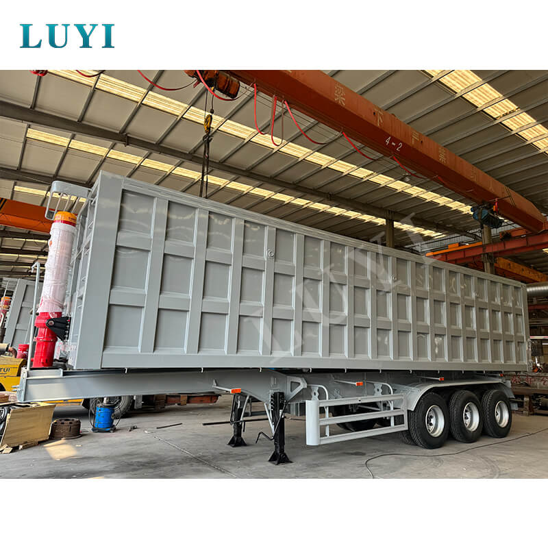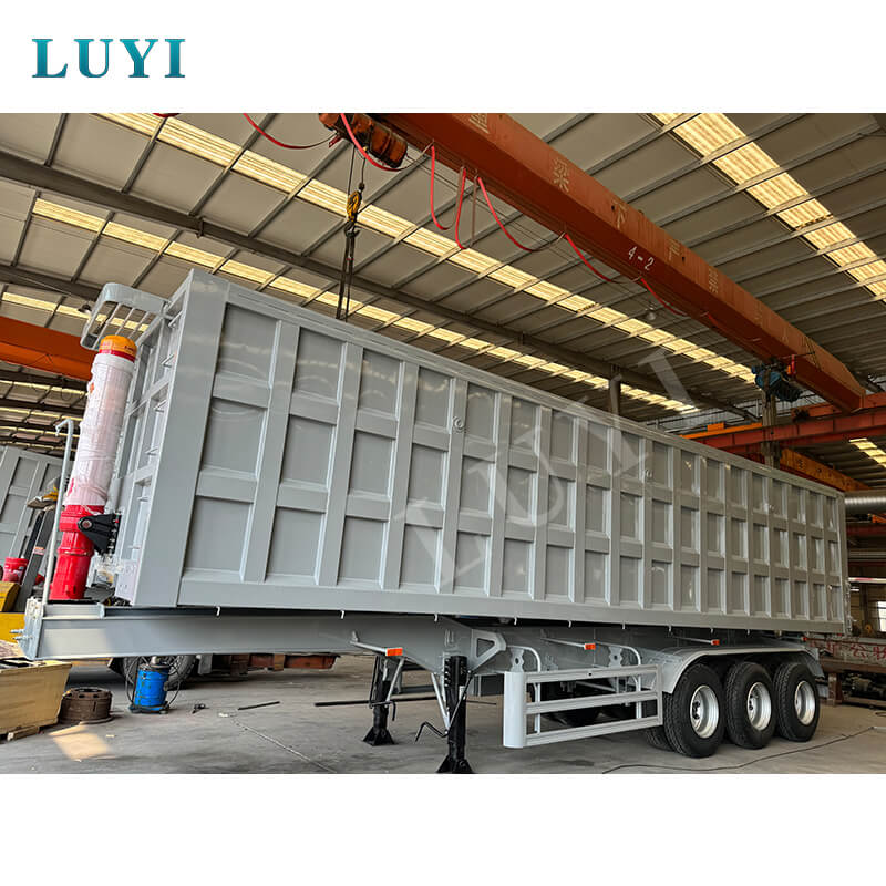 Dieser 3-achsige 50-60-Tonnen-Heckkipper-Sattelauflieger mit hydraulischem Hubzylinder von LUYI ist eine Hochleistungslösung für den Transport von Sand und Kies. Der aus Shandong, China, stammende Wagen ist aus hochwertigem Stahl gefertigt und verfügt über eine maximale Nutzlast von 80 Tonnen, um schwere Lasten mühelos zu transportieren.