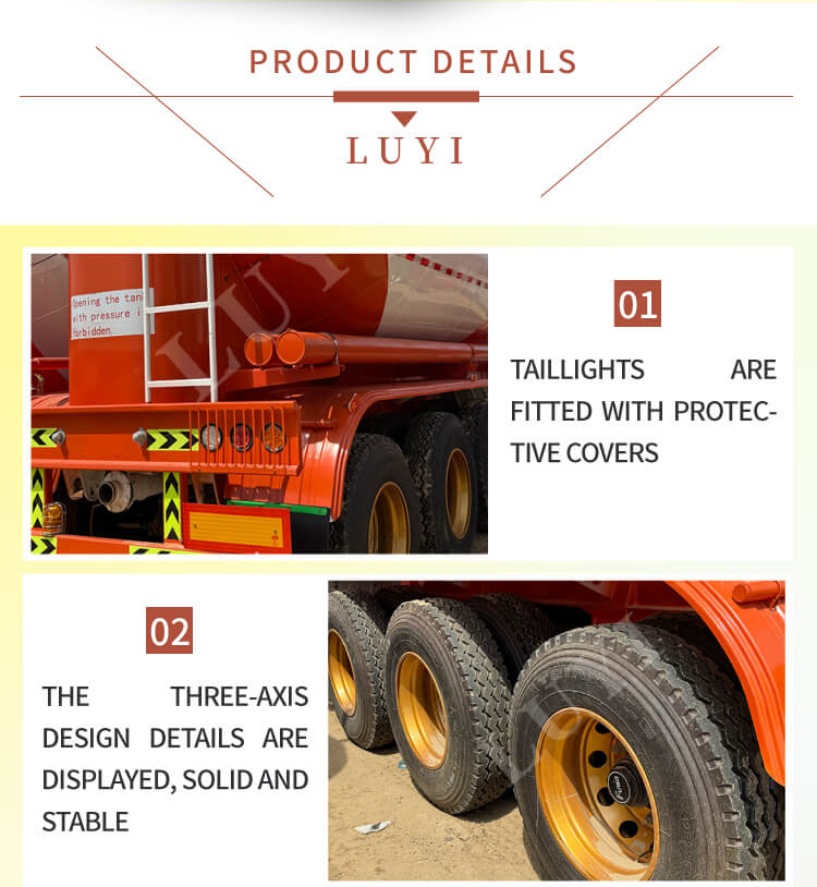 Der 3-achsige 50-Tonnen-V-Typ-Zementtanker-Sattelauflieger von LUYI stammt aus der chinesischen Provinz Shandong und ist ein hocheffizienter LKW-Sattelauflieger, der speziell für den Massentransport von Zementpulver entwickelt wurde und auch als Pulvertankwagen bekannt ist und die Anforderungen von Frachttransportszenarien genau erfüllt.