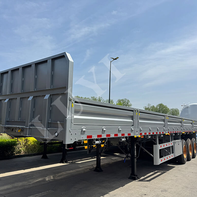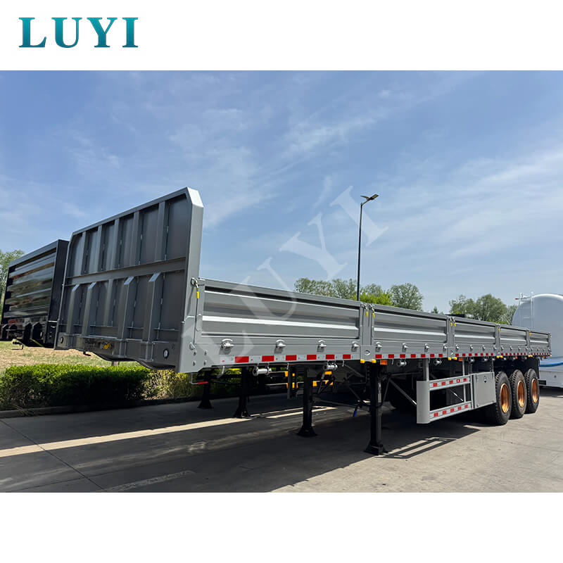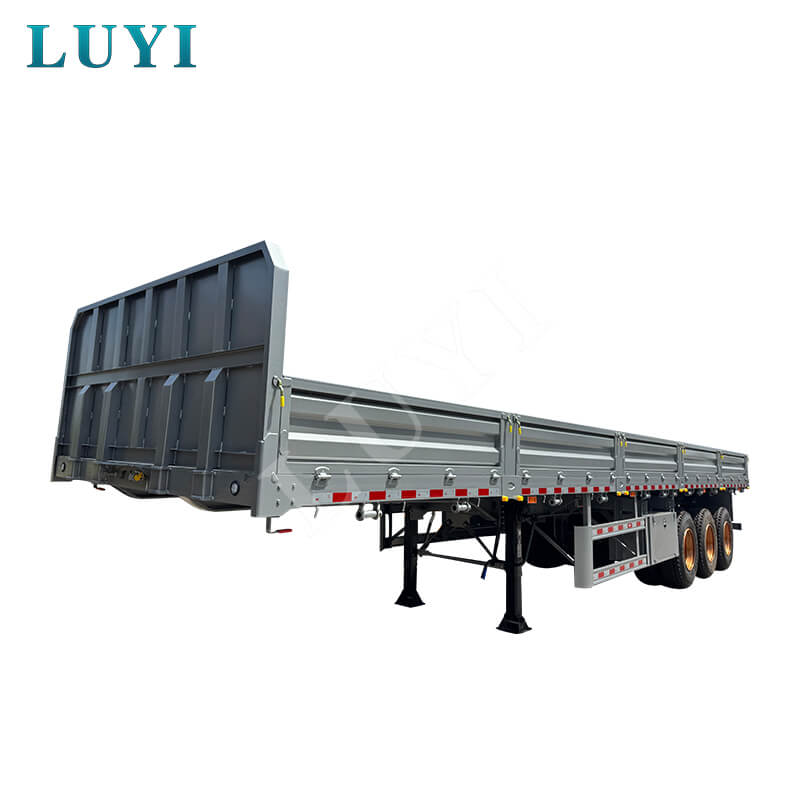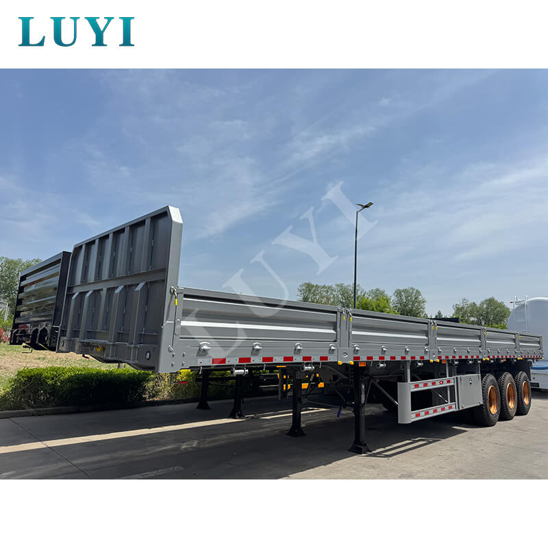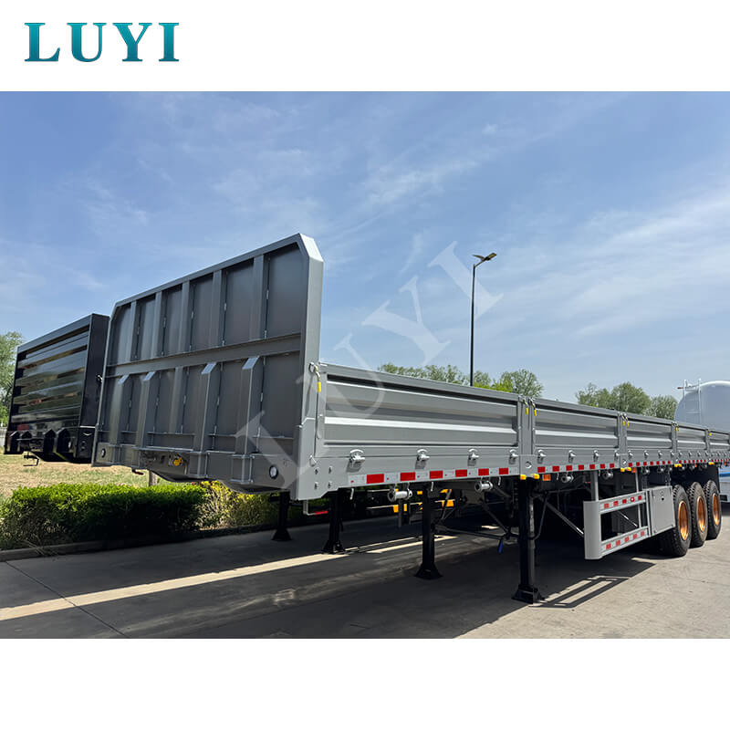 Der Luyi 3-Achs 60-Tonnen-Sattelauflieger mit Seitenwandrungen stammt aus der chinesischen Provinz Shandong und ist ein hochwertiger Sattelauflieger, der speziell für den Transport schwerer Güter entwickelt wurde. Er ist aus hochwertigem Stahl gefertigt und kombiniert außergewöhnliche Haltbarkeit mit stabiler Tragfähigkeit. Er verfügt über eine maximale effektive Nutzlast von 60 Tonnen, wodurch er verschiedene Transportanforderungen für schwere Lkw-Anhänger problemlos bewältigen kann.
