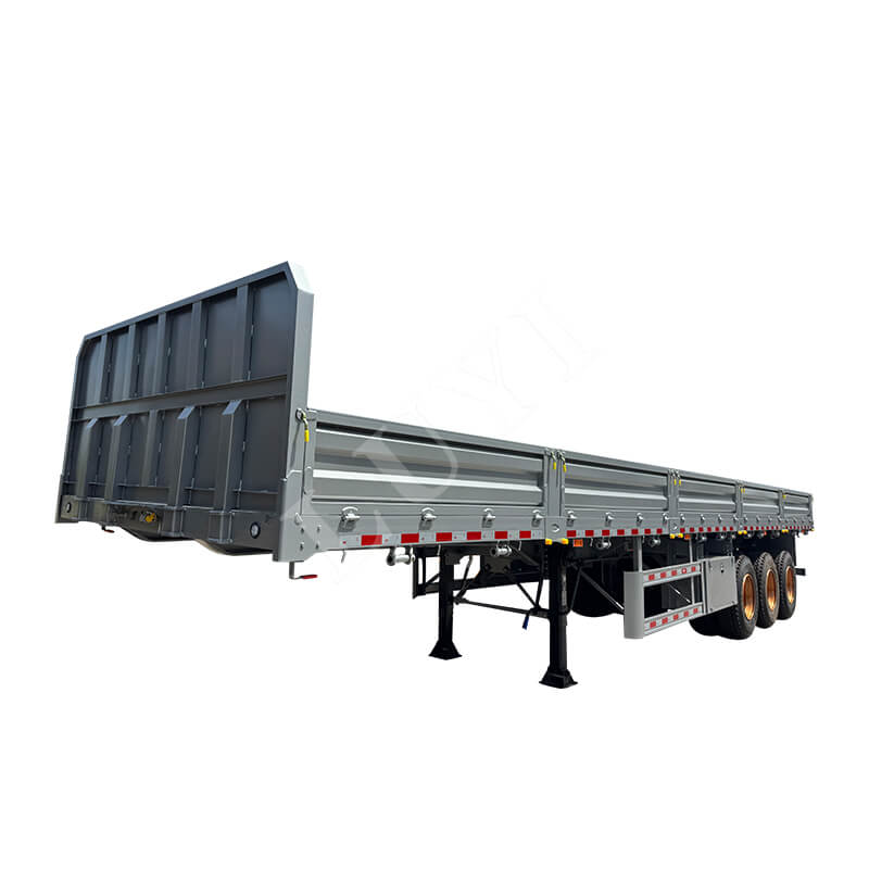Mit den Abmessungen 12500×2500×1500 mm ist das Produkt mit 3 Achsen ausgestattet. Kunden können Achsen bekannter Marken wie Fuhua, BPW oder Luyi wählen. Es bietet außerdem zwei Federungsoptionen: mechanische Federung und Luftfederung, die für ein gleichmäßiges Fahrverhalten sorgen. Die Stützbeine haben die standardmäßige 28-Tonnen-Konfiguration und der Achsschenkelbolzen ist in den JOST-Spezifikationen 2 Zoll (50 mm) oder 3,5 Zoll (90 mm) erhältlich und passt sich so unterschiedlichen Traktionsanforderungen an.
