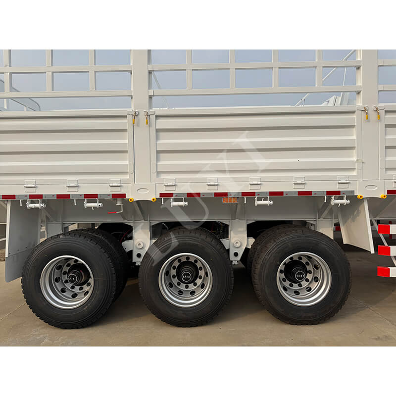 Der Anhänger besteht hauptsächlich aus hochwertigem Stahl und verfügt über eine solide und langlebige Struktur. Seine maximale Nutzlast beträgt 100 Tonnen und die reguläre Ladekapazität liegt zwischen 80 und 100 Tonnen. Mit Abmessungen von 1250025002000 mm ist es mit 3 Achsen der Marken FUWA oder BPW ausgestattet und Sie können flexibel zwischen mechanischer Federung und Luftfederung wählen, um sich an unterschiedliche Straßenverhältnisse anzupassen. Der Achsschenkelbolzen bietet JOST-Optionen mit 2 Zoll (50 mm) oder 3,5 Zoll (90 mm), die Stützbeine entsprechen der Standardspezifikation für 28 Tonnen und die Reifen können 12R22.5-, 12.00R20- oder 11R22.5-Modelle sein. Er verfügt über umfangreiche Funktionen, ist für den Transport von Tieren, Stückgütern und Containern geeignet und kann zudem farblich nach Bedarf angepasst werden, was eine zuverlässige Lösung für verschiedene Frachtszenarien darstellt.