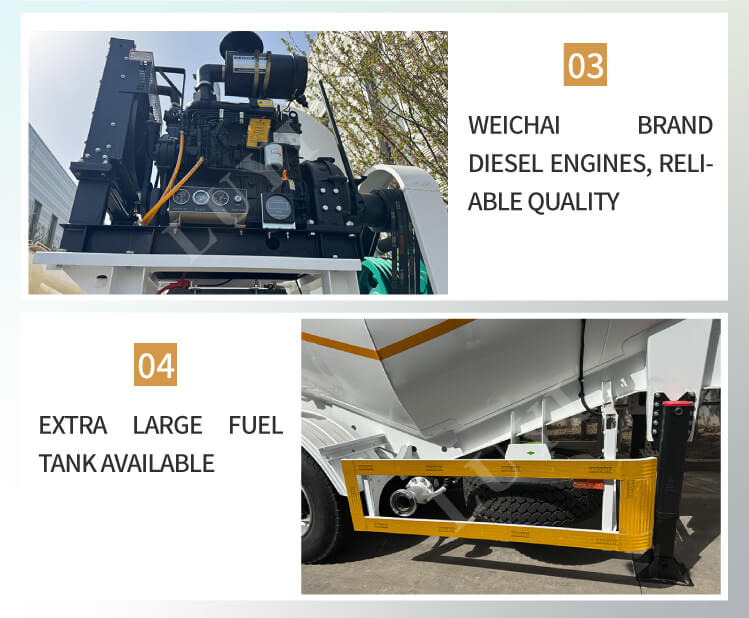 Der Tankwagenkörper besteht aus hochwertigem Stahl, wobei für die Seitenträger 16#-Kanalstahl verwendet wird, was eine robuste und langlebige Struktur gewährleistet. Seine maximale Nutzlast liegt bei über 30.000 kg, die Ladekapazität reicht von 30 bis 60 Tonnen und lässt sich flexibel an die Anforderungen unterschiedlicher Transportvolumina anpassen. Ausgestattet mit einer 3-Achs-Struktur, abgestimmt auf 12R22,5-Reifen und 9,00-22,5-Felgen und unterstützt durch eine mechanische Luftfederung, läuft es stabil und kommt mit verschiedenen Straßenbedingungen zurecht. Die serienmäßigen 28-Tonnen-Stützstützen sorgen für festen Halt beim Parken. Darüber hinaus verfügt es über eine 6-jährige Garantiezeit, die Nutzungsbedenken umfassend reduziert und eine zuverlässige und langfristige Geräteunterstützung für den Massentransport von Zementpulver bietet.