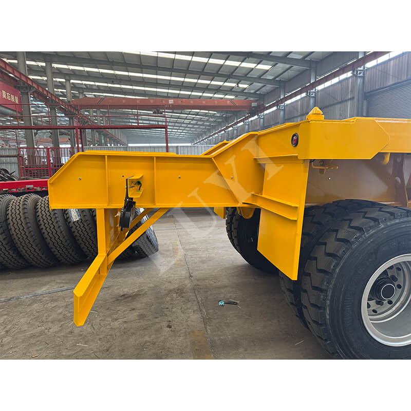 Die gesamte Karosserie besteht aus hochwertigem Stahl und verfügt über eine robuste und langlebige Struktur mit hoher Verschleißfestigkeit und Verformungsbeständigkeit, die sich über einen langen Zeitraum an komplexe Transportumgebungen anpassen lässt. Das Fahrzeug ist mit 3 Achsen von 13-Tonnen-Markenachsen ausgestattet, gepaart mit 12R22,5-Reifen und mechanischer Federung, was eine hervorragende Fahrstabilität und reibungslose Fahrt auch bei unterschiedlichen Straßenverhältnissen gewährleistet. Die serienmäßigen 28-Tonnen-Ausleger bieten stabilen Halt beim Be- und Entladen, und der Königszapfen bietet zwei Optionen: 2 Zoll (50 mm) und 3,5 Zoll (90 mm), die mit den meisten Traktoren kompatibel sind. Darüber hinaus kann die Farbe an die Bedürfnisse des Kunden angepasst werden, um individuelle Nutzungspräferenzen vollständig zu erfüllen und einen effizienten Transport zu ermöglichen.