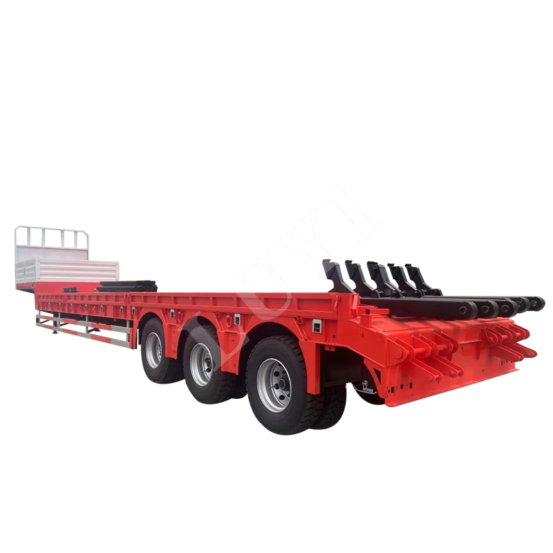 Die Abmessungen des Anhängers betragen 17.000 x 3.000 x 1.600 mm, die maximale Nutzlast liegt bei 60–120 Tonnen und liegt damit weit über dem Grundtragfähigkeitsstandard. Es bietet 2/3/4-Achsen-Optionen, ausgestattet mit Achsen bekannter Marken (BPW oder FUWA) und unterstützt den Wechsel zwischen mechanischer Federung und Luftfederung. In Kombination mit 12R22.5-Reifen sorgt es für stabiles Fahren und passt sich verschiedenen Straßenbedingungen an. Darüber hinaus garantiert das standardmäßige 28-Tonnen-Fahrwerk ein sicheres Be- und Entladen, und der Königszapfen bietet JOST-Optionen mit 2 Zoll (50 mm) oder 3,5 Zoll (90 mm) für eine starke Anpassungsfähigkeit. Darüber hinaus wird eine 6-Jahres-Garantie angeboten, die den Transport schwerer Geräte effizient und sorgenfrei macht.