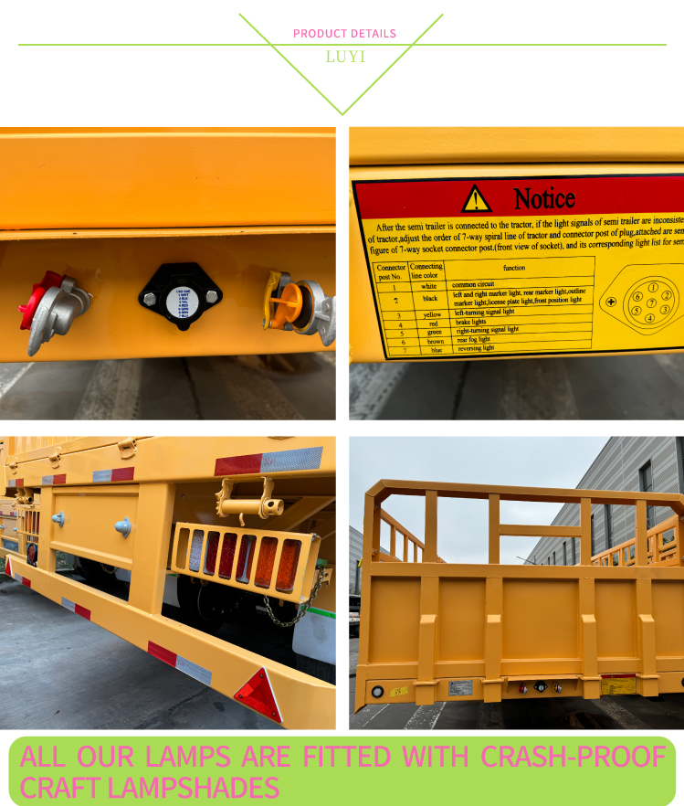 Dieser Sattelauflieger bietet anpassbare Farben für individuelle Vorlieben und unterstützt auch Achseinstellungen (2/3/4 Achsen) für verschiedene Transportszenarien. Unterstützt durch die strenge Qualitätskontrolle und den professionellen After-Sales-Service von LUYI bietet das Unternehmen dauerhafte, effiziente und vielseitige Transportunterstützung für globale Kunden und wird so zu einem vertrauenswürdigen Partner in der grenzüberschreitenden Logistik.