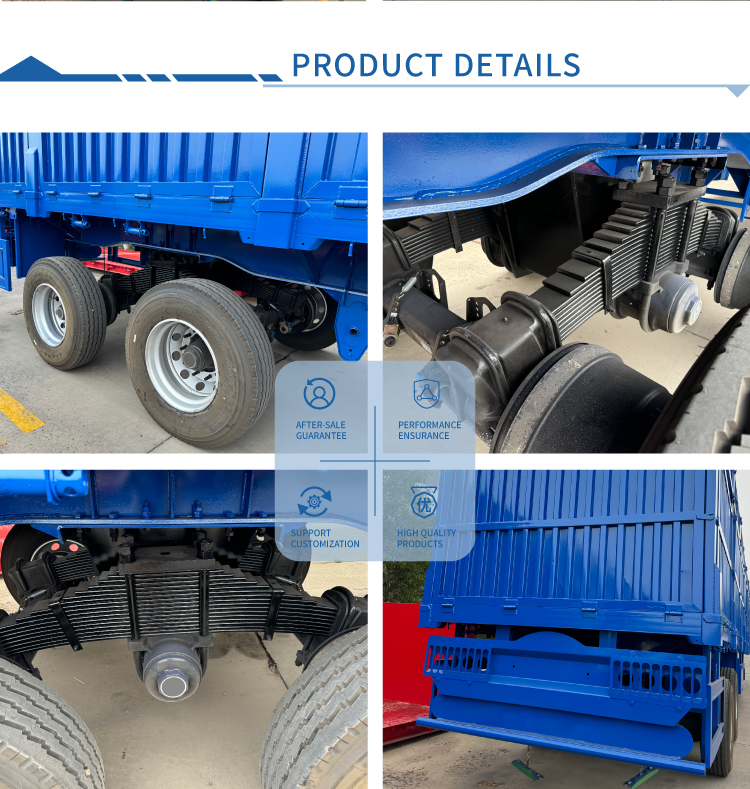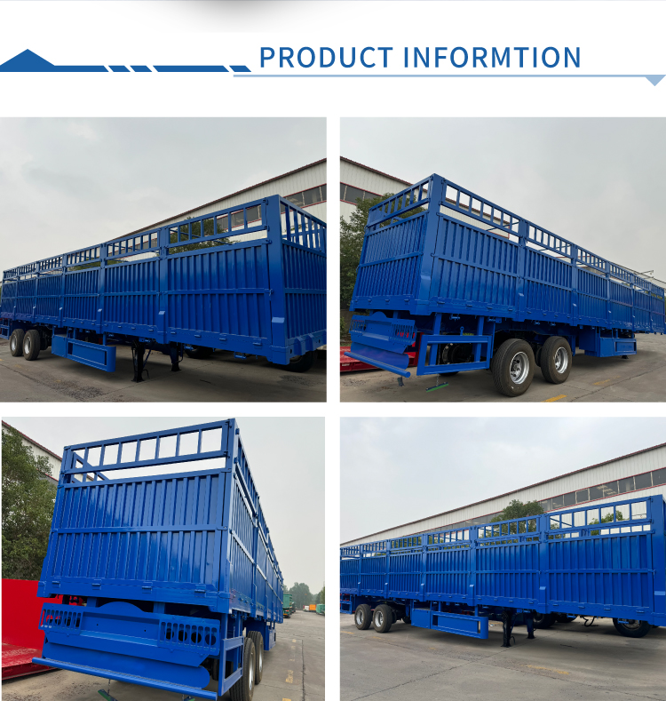 Der aus hochwertigem Stahl gefertigte Anhänger zeichnet sich durch Langlebigkeit und Verschleißfestigkeit aus, während das optionale mechanische oder Luftfederungssystem den Fahrkomfort erhöht und die Integrität der Ladung schützt. Es ist mit 12R22.5/12.00R20/11R22.5-Reifenoptionen und einem standardmäßigen 28-Tonnen-Fahrwerk ausgestattet, ergänzt durch 2" (50 mm) oder 3,5" (90 mm) JOST-Königszapfen für eine sichere Verbindung mit Traktoren. Dieser farblich an Ihre Vorlieben anpassbare Zaunauflieger eignet sich ideal für den Transport von Massengütern, Baumaterialien und Industriebedarf und bietet zuverlässige Leistung, vielseitige Anpassungsfähigkeit und einen dauerhaften Wert für grenzüberschreitende Logistikvorgänge.