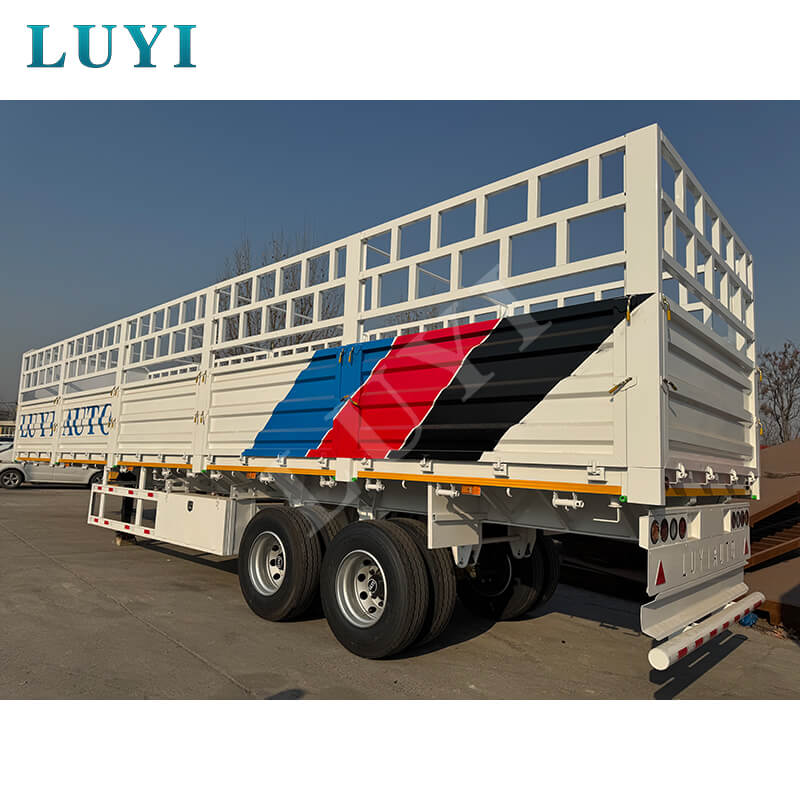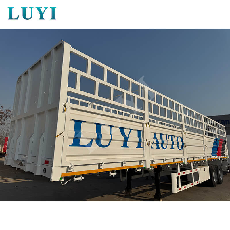 Der neu entwickelte 2-Achs-Sattelauflieger mit hohen Zaunseitenwänden von LUYI bietet zwei Ladekapazitäten von 30 und 60 Tonnen und ist damit perfekt für den mittleren und schweren Frachtbedarf wie Baumaterialien, Industrieausrüstung und landwirtschaftliche Produkte geeignet. Die hohe Zaunstruktur verhindert effektiv das Verschütten von Ladung während des Transports, während Sie mit den anpassbaren Funktionen die Zaunhöhe, das Transportmaterial und die rutschfesten Böden genau an Ihre Anforderungen anpassen können. Dieser vielseitige, maßgeschneiderte Anhänger ist jetzt zum Verkauf verfügbar und eignet sich gleichermaßen für Logistikunternehmen und Frachtunternehmen.