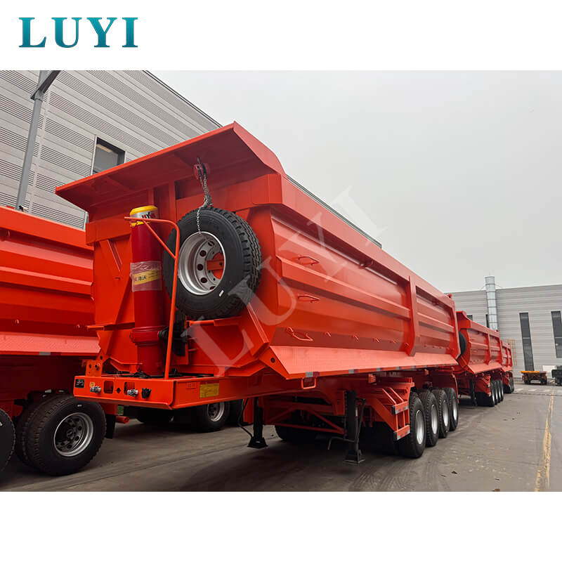 Der Luyi 4-Achs-100-Tonnen-U-Typ-Heckkipp-Sattelauflieger stammt aus der chinesischen Provinz Shandong und ist ein brandneuer Heckentlade-Sattelauflieger, der speziell für den Transport von Sand und Kies entwickelt wurde. Der Anhängeraufbau besteht aus hochwertigem Stahl mit Abmessungen von 9,6 x 2,5 x 2 Metern und einem Volumen von 35 bis 60 Kubikmetern und ermöglicht eine effiziente Beladung von Schüttgütern wie Sand und Kies.