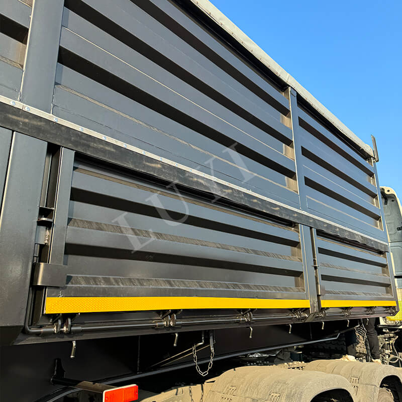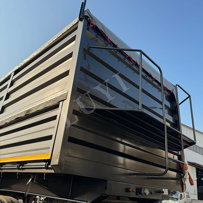 Der aus der Provinz Shandong in China stammende LUYI 4-Axle 40-Foot 80-Ton Dump Semi-Trailer ist ein leistungsstarker Dump-Sattelauflieger, der speziell für den Transport von Sand, Kies und Kohle entwickelt wurde. Der Anhängeraufbau besteht aus hochwertigem Kohlenstoffstahl mit den Abmessungen 9500×2500×3600 mm. Er verfügt über eine robuste Struktur, die hohen Belastungen standhält, mit einer maximalen Nutzlast von bis zu 80 Tonnen und ermöglicht eine effiziente Beladung verschiedener Schüttgüter.