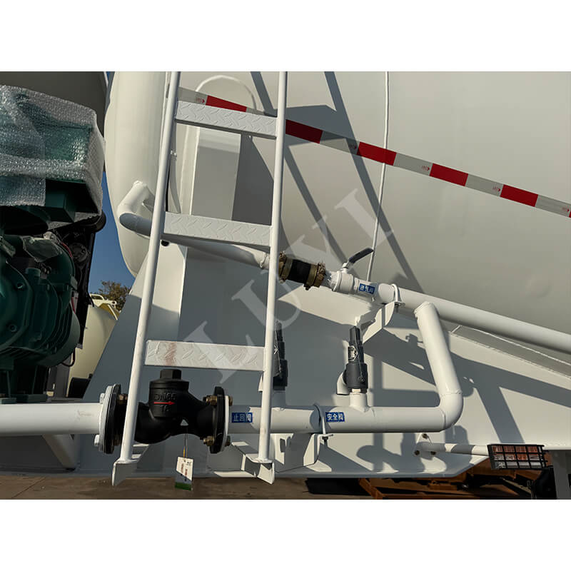 Das Tankdesign eignet sich für die versiegelten Lager- und Transporteigenschaften von Zement und verhindert wirksam das Austreten von Material. Das Fahrzeug ist mit 4 Achsen und 16 Reifen ausgestattet, kombiniert mit einem Blattfederungssystem, was die Fahrstabilität und Tragfähigkeit erheblich verbessert und es für den Transport unter schwierigen Straßenverhältnissen geeignet macht. Was die Funktionen betrifft, ist das Fahrzeug mit einer Selbstentladefunktion ausgestattet, die den Zement effizient entladen und manuelle Vorgänge reduzieren kann. Außerdem ist er serienmäßig mit einem Antiblockiersystem (ABS) ausgestattet, das die Sicherheit bei Notbremsungen erhöht und das Unfallrisiko verringert. Das Produkt befindet sich in einem brandneuen Zustand und das Markenzeichen kann je nach Bedarf angepasst werden. Es ist eine zuverlässige Wahl in den Bereichen Ingenieurbau und Baustofftransport.