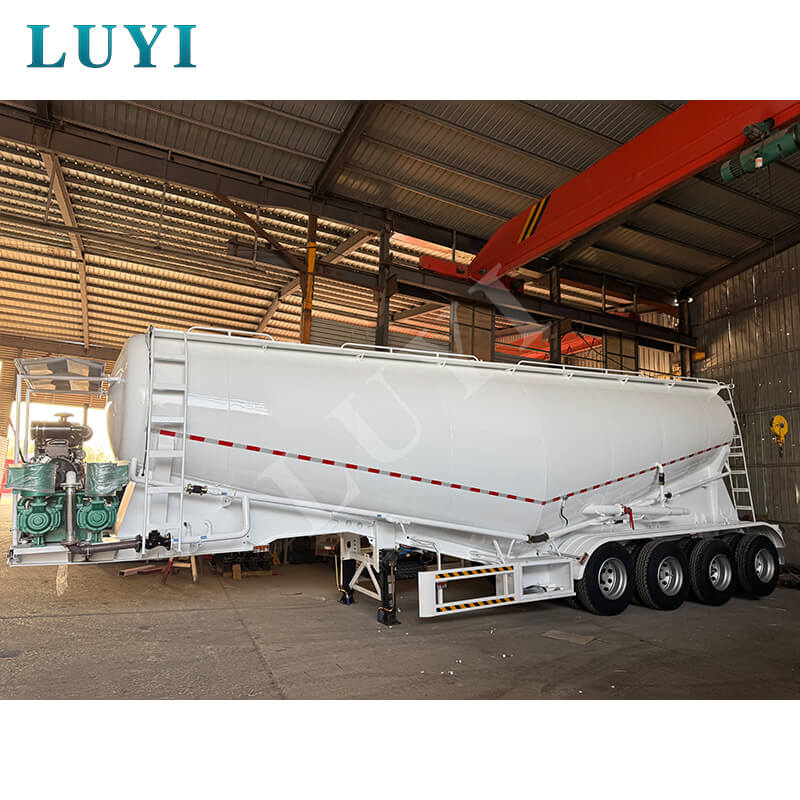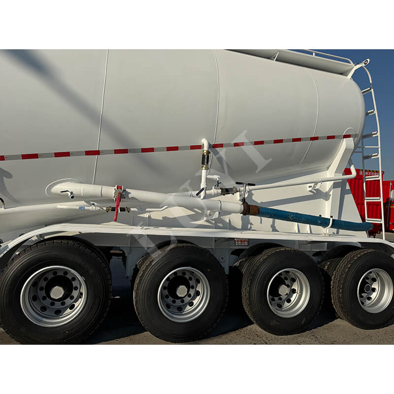 Dieser 4-achsige 50-Kubikmeter-Zementtankauflieger ist ein Schwerlastaufliegermodell, das speziell für den Massentransport von Zement entwickelt wurde. Es verfügt über eine Tragfähigkeit von 50 Tonnen und erfüllt damit die Kernanforderungen des Schwerlasttransports. Der Körper besteht aus hochhartem Stahl und zeichnet sich durch eine stabile und langlebige Struktur aus.