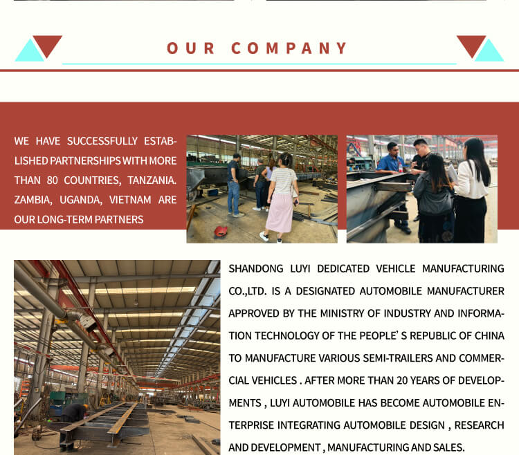 Unsere Fabrik produziert nicht nur Traktoren, sondern auch Muldenkipper, Sprinklerwagen, Autokräne, Mischwagen, Kippanhänger, Tankanhänger, Tieflader, Entstaubungsanhänger usw. Unsere Fabrik ist groß und kann verschiedene Produkte entsprechend den unterschiedlichen Kundenanforderungen anpassen.