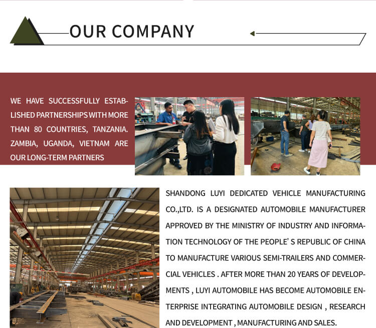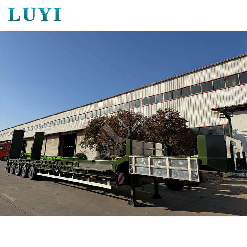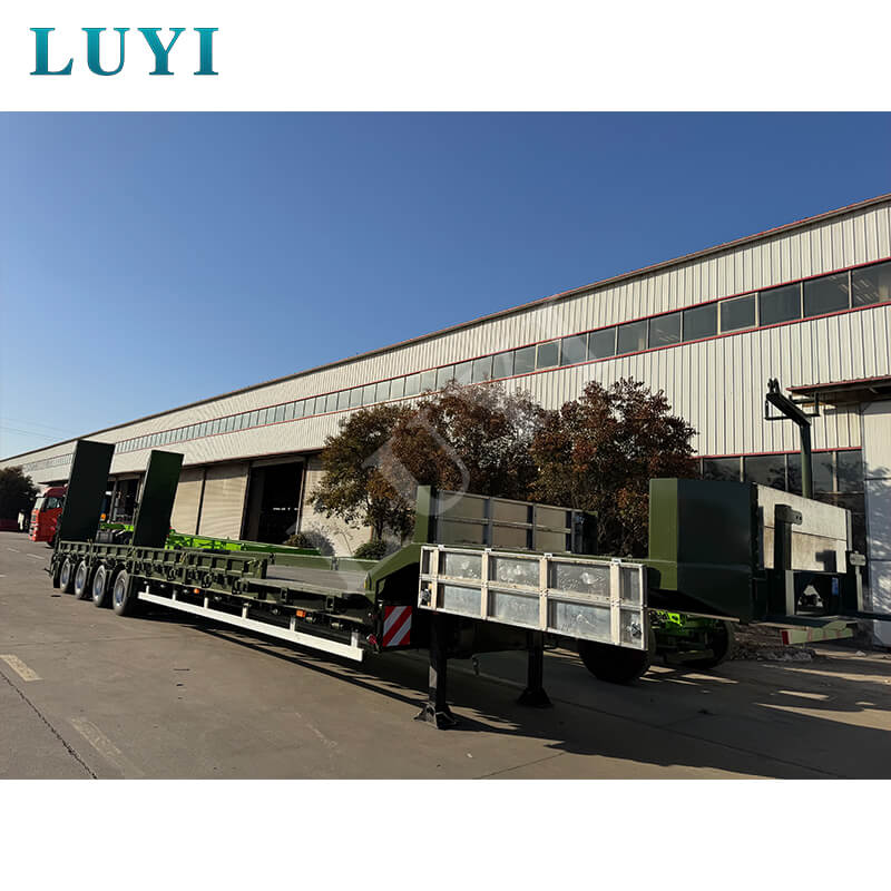 Der 4-achsige 60-Tonnen-Schwanenhals-Tiefbett-Sattelauflieger LUYI, ein brandneues Produkt aus Shandong, China, ist ein professioneller LKW-Anhänger, der für den Schwerlasttransport konzipiert ist. Als Hauptmaterial wird hochwertiger Stahl mit einer Standardgröße von 13 m × 3 m × 2,5 m und einer maximalen Nutzlast von 60 Tonnen verwendet, um den Schwerlasttransportanforderungen gerecht zu werden.