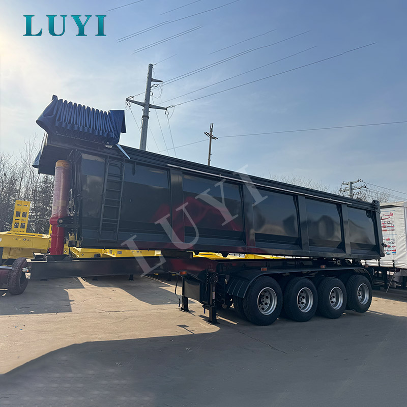 Die Konstruktion besteht aus Radnaben aus Q345-Kohlenstoffstahl mit einer Höhe von 500 mm und verstärkten Hauptträgern mit einer Tragfähigkeit von 70 Tonnen und sorgt für hohe strukturelle Stabilität und lange Lebensdauer. Ausgestattet mit optionalen 4/6 Achsen, passenden mechanischen Feder- oder Luftfederungssystemen und Multi-Spec-Reifen, einschließlich 11.00R20, 12R20 und 315/80R22.5, läuft es stabil auf unterschiedlichen, komplexen Straßenbedingungen. Der über einen Hydraulikzylinder angetriebene U-förmige Kippaufbau ermöglicht ein schnelles und effizientes Entladen. Anpassbare Farben sind erhältlich, um unterschiedlichen Kundenanforderungen gerecht zu werden, was es zu einem zuverlässigen und langlebigen Schwertransportgerät für Schüttgüter wie Sand, Kies und Kohle macht.