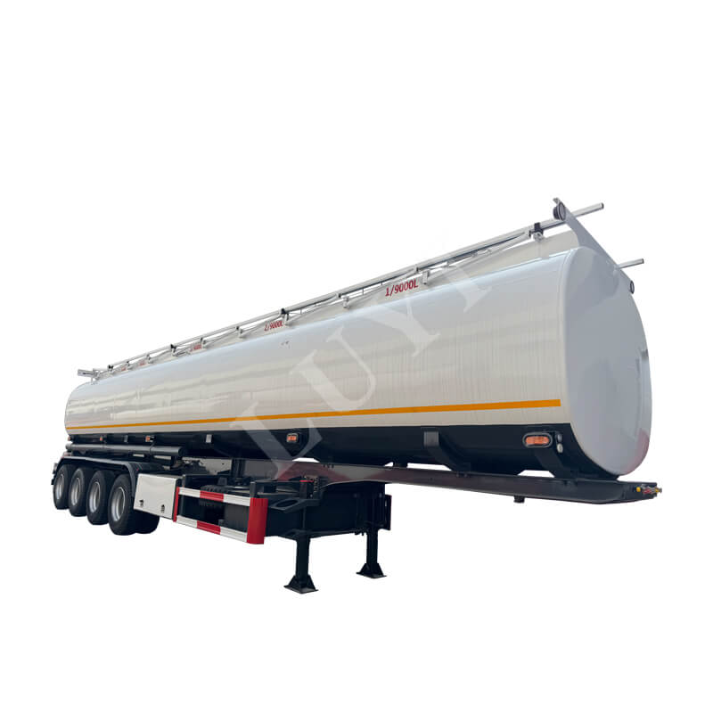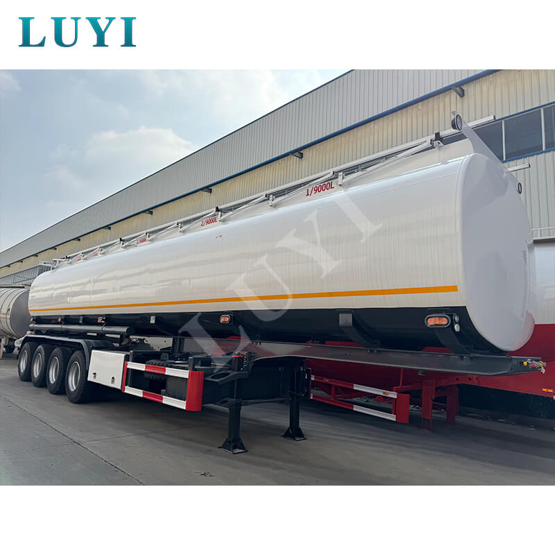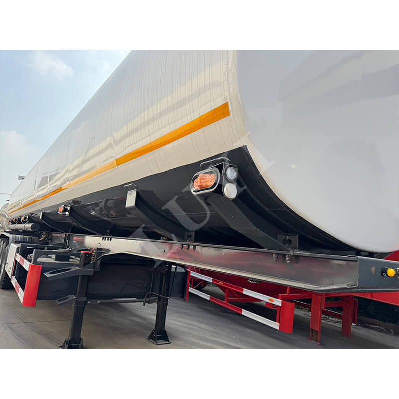 Ausgestattet mit der 4-Achs-Konstruktion von Luyi und gepaart mit 12R22,5-Reifen sorgt der Sattelauflieger für hohe Fahrstabilität. Das Federungssystem bietet zwei Optionen: mechanische Federung und Luftfederung, die verschiedenen Straßenbedingungen gerecht werden. Die Abstützungen entsprechen der standardmäßigen 28-Tonnen-Spezifikation und der Achsschenkelbolzen ist in den Ausführungen 2 Zoll (50 mm) oder 3,5 Zoll (90 mm) erhältlich, was eine hervorragende Anpassungsfähigkeit bietet. Die Karosseriefarbe unterstützt die kundenspezifische Anpassung an unterschiedliche Markenimages, gewährleistet einen effizienten und sicheren Kraftstofftransport und bietet zuverlässige Ausrüstungsunterstützung für Logistikabläufe.