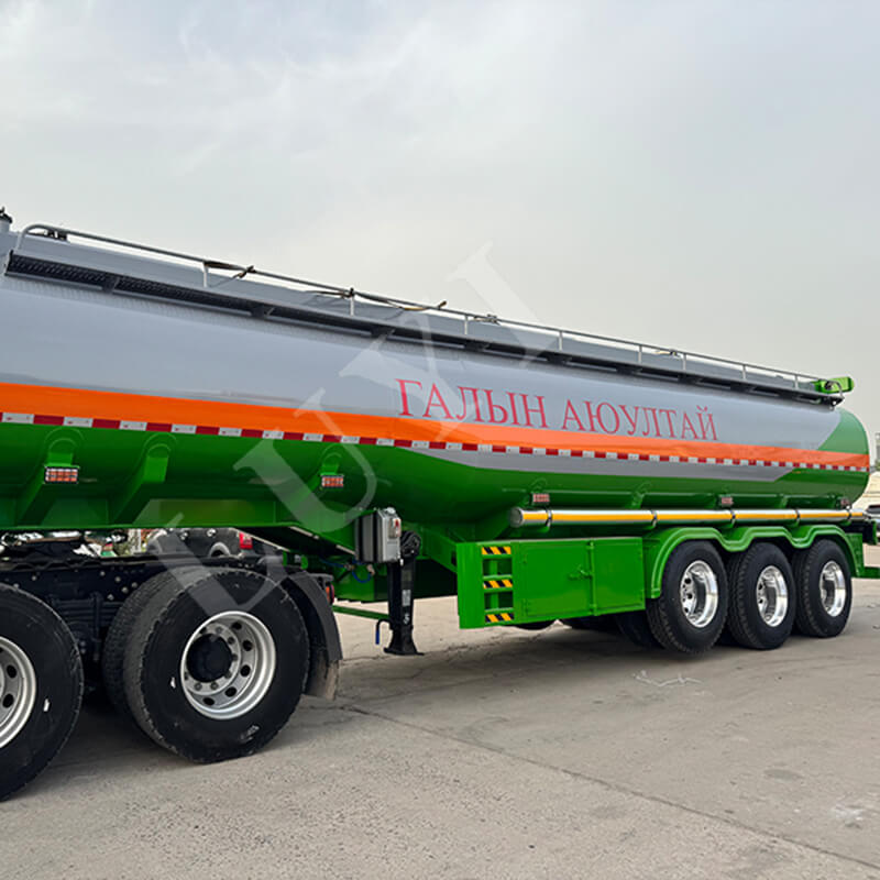Der aus hochwertigem Stahl gefertigte Sattelauflieger verfügt über zuverlässige Kernkonfigurationen. Es verfügt über Achsen der Marken BPW und FUWA (2/3/4 Achsen optional) und ein Doppelfederungssystem aus mechanischer Feder und Luftfederung für stabile Fahrten. Zu den Reifenspezifikationen gehören 315/80R22.5, 12R22.5, 12.00R20 oder andere optionale Typen, gepaart mit einem standardmäßigen 28-Tonnen-Fahrwerk. Die Farbe ist je nach Kundenwunsch anpassbar und es gibt eine 6-jährige After-Sales-Garantie, die einen sicheren und sorgenfreien Kraftstofftransport gewährleistet.