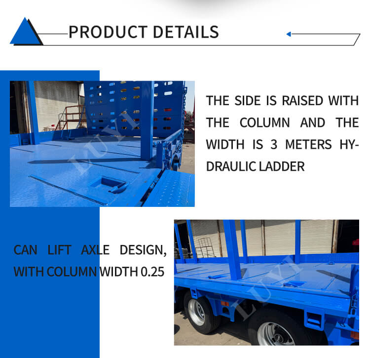 Der aus Shandong, China, stammende LUYI Container Flatbed Semi-Trailer ist ein hochwertiger Sattelauflieger, der speziell für den Schwerlasttransport entwickelt wurde.