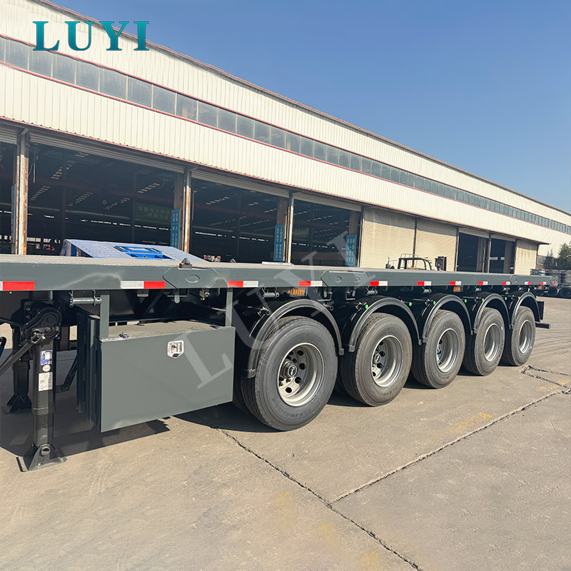 Der aus Shandong, China, einem Premium-Produktionsstandort, stammende LUYI 5-Achs-Leichtbau-Pritschensattelauflieger ist maßgeschneidert für den Baumaterialtransport und dient als zuverlässiger Partner im Bereich der technischen Logistik. Der aus hochwertigem Kohlenstoffstahl gefertigte Anhänger vereint leichtes Design mit struktureller Steifigkeit, wodurch der Energieverbrauch beim Transport reduziert und gleichzeitig eine Nennnutzlast von 40 Tonnen sicher bewältigt wird. Es erfüllt mühelos die Transportanforderungen verschiedener Baumaterialien über große Entfernungen, darunter Stein, Stahl und Fertigteile.