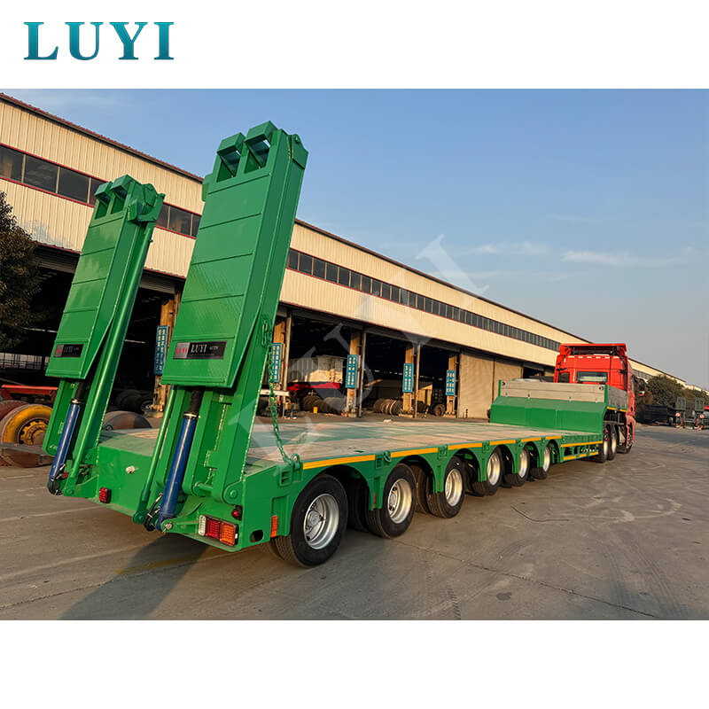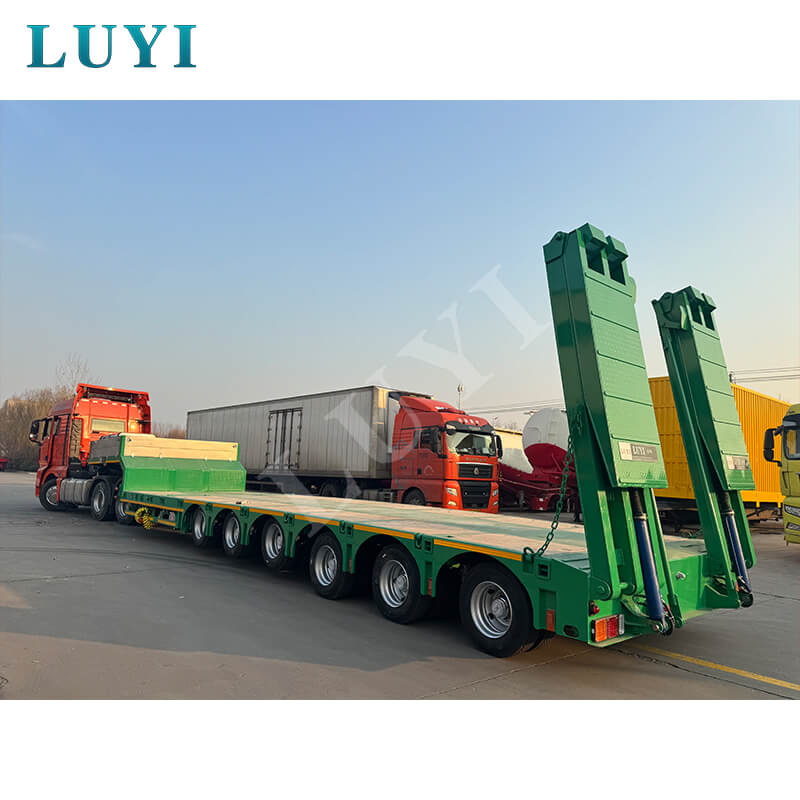 Der Luyi 6-Achs-80-Tonnen-Schwerlast-Sattelauflieger stammt aus der chinesischen Provinz Shandong und ist ein professioneller LKW-Anhänger, der für Schwerlasttransportszenarien entwickelt wurde. Er ist aus hochwertigem Stahl gefertigt und verfügt über eine beeindruckende maximale Nutzlast von 120 Tonnen. Er bewältigt problemlos 80 Tonnen schwere Maschinen und andere große Ladungen mit robuster Leistung.