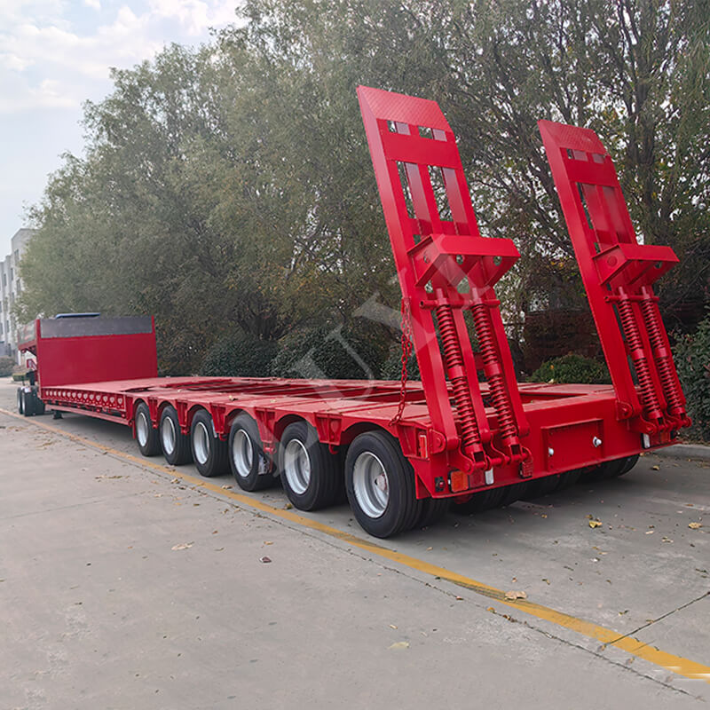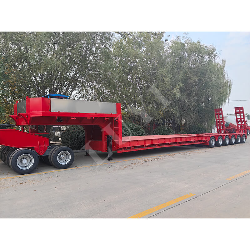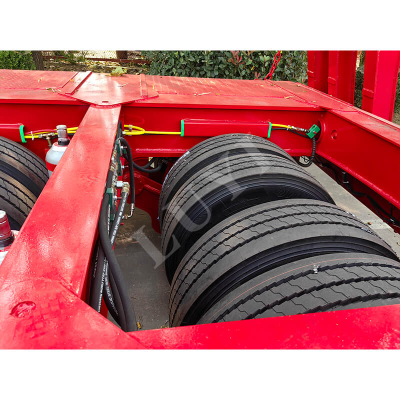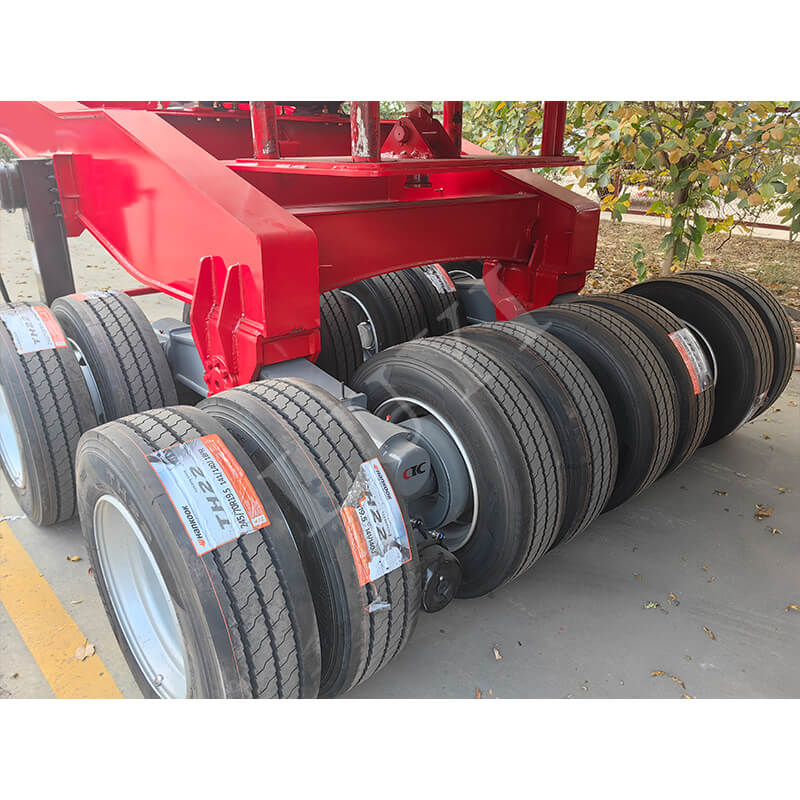 Der Anhänger hat die Abmessungen 18.000 x 2.500 mm und seine Arbeitsplatte beträgt insgesamt 18 Meter (einschließlich eines 5-Meter-Teleskopabschnitts), wodurch er sich flexibel an Ladung unterschiedlicher Länge anpassen lässt. Ausgestattet mit 22 Achsen (je 13 Tonnen) und 28 Tonnen schwerem Fahrwerk sorgt es für stabiles Fahren und sicheren Halt. Es verwendet einheitlich 12R22,5-Reifen mit 50#- oder 90#-Kingpin-Optionen und einem festen Schwanenhalsdesign, wodurch Praktikabilität und Zuverlässigkeit in Einklang gebracht werden, um unterschiedlichen Transportanforderungen gerecht zu werden.