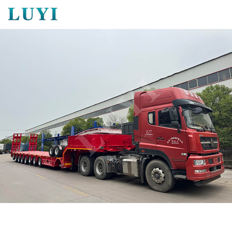 Der luftgefederte 8-Achsen-120T-Tiefbett-Sattelauflieger LUYI mit Ursprung in Shandong, China, ist ein Hochleistungs-Sattelauflieger, der speziell für den Schwerlasttransport entwickelt wurde. Er besteht aus hochwertigem Stahl und misst 22.000 x 3.000 x 1.600 mm mit einer maximalen Nutzlast von 100 Tonnen. Damit wird er problemlos den Transportanforderungen verschiedener schwerer Geräte gerecht.