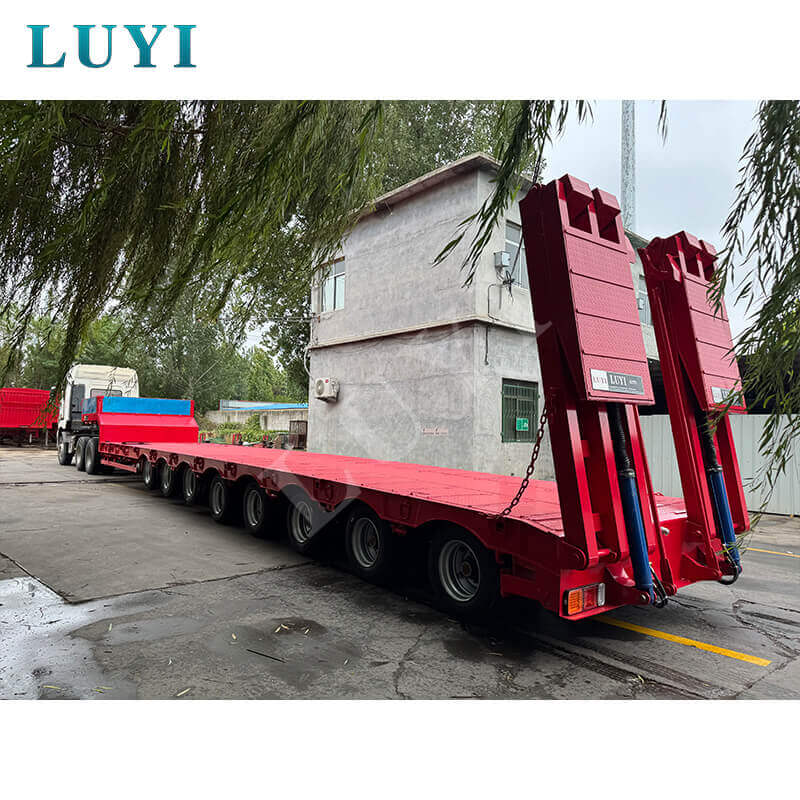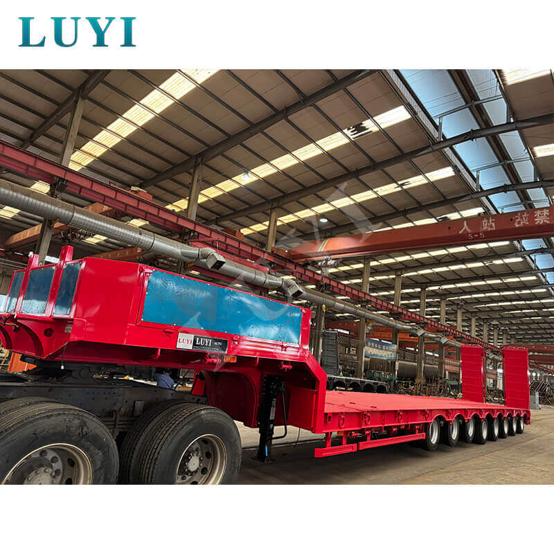 Der 8-Achs-Hochleistungs-220-Tonnen-Schwanenhals-Tiefbettanhänger von Luyi Vehicle aus Shandong, China, ist ein Sattelauflieger, der auf den Transport von schwerem Gerät spezialisiert ist. Es besteht aus hochwertigem Stahl und misst 17.000 x 3.000 x 1.800 mm. Die Tragfähigkeit reicht von 60 bis 200 Tonnen und die maximale Nutzlast beträgt 200 Tonnen. Damit wird es den Anforderungen des Schwerlasttransports voll und ganz gerecht.