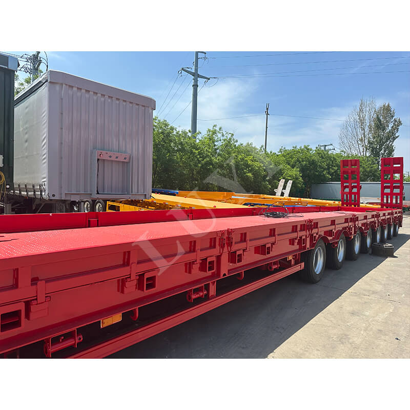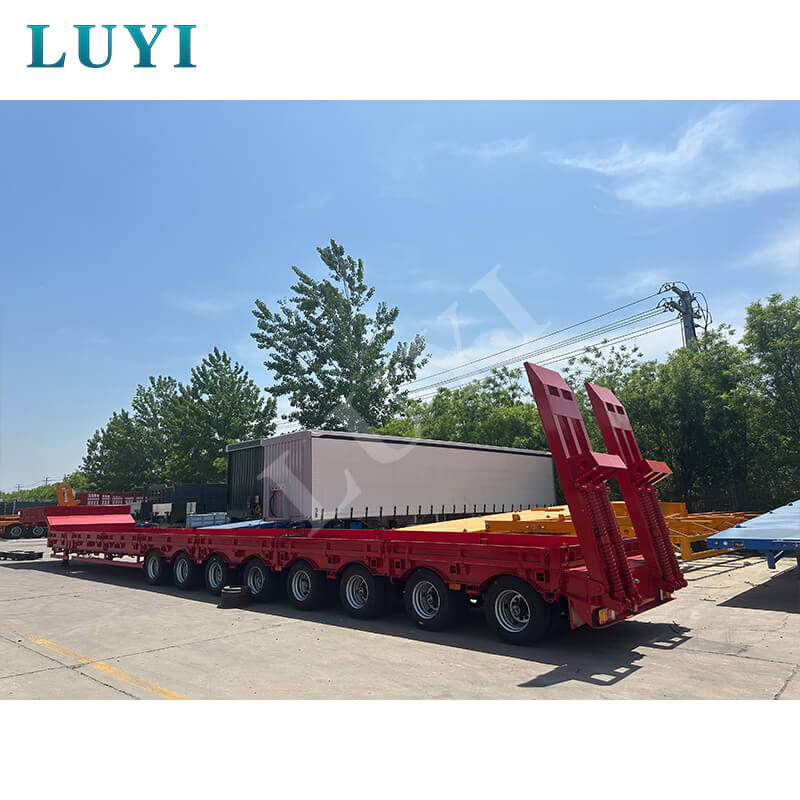 Der aus der Provinz Shandong in China stammende Luyi 8-Axle Retractable Lowboy Semi-Trailer ist ein professioneller Schwerlasttransport-Sattelauflieger, der hauptsächlich aus Kohlenstoffstahl und Aluminium besteht. Ausgestattet mit 8 Achsen renommierter Marken wie Fuwa und BPW, verfügt er über mechanische Federung oder Luftfederung und ist mit verschiedenen Reifenspezifikationen kompatibel, darunter 12R22.5, 12.00R20 und 11R22.5, und verfügt über eine robuste Tragfähigkeit bei einer maximalen Nutzlast von 100 Tonnen.