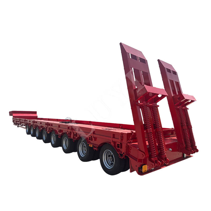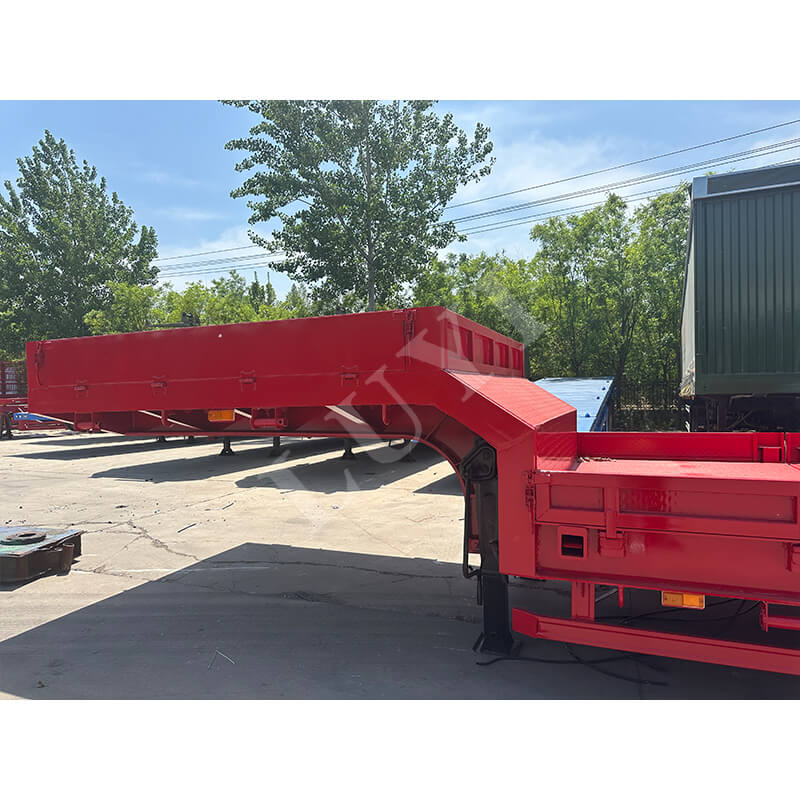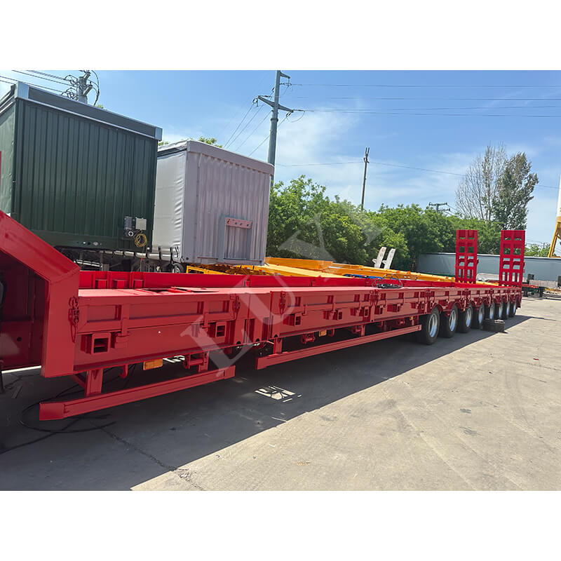 Der Anhänger verfügt über eine Einziehfunktion und passt sich so flexibel an die Transportbedürfnisse von schwerem Gerät unterschiedlicher Größe an. Es ist mit einem standardmäßigen 28-Tonnen-Fahrwerk und optionalen JOST-Kingpins in den Größen 2 Zoll (50 mm) oder 3,5 Zoll (90 mm) ausgestattet, was Verbindungsstabilität und Anwendungsanpassungsfähigkeit gewährleistet. Aufgrund seiner zuverlässigen Struktur und professionellen Konfiguration ist er farblich anpassbar und wird zum bevorzugten LKW-Anhänger für den Transport von schwerem Gerät.