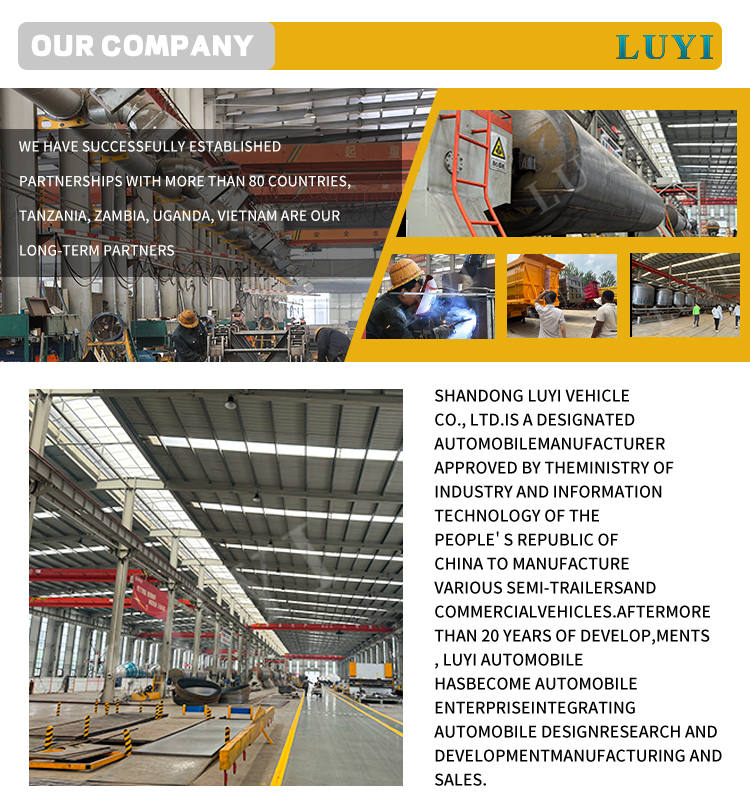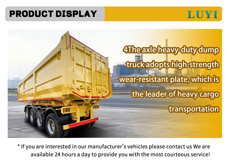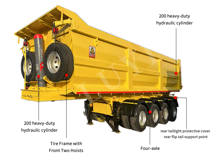 Der aus Shandong, Chinas hochwertigem Produktionsstandort, stammende LUYI 4-Achs-Heckkipper-Sattelauflieger ist eine hocheffiziente Ausrüstung, die speziell für den Schwerlasttransport von Massengütern entwickelt wurde. Er besteht aus hochfestem Stahl und vereint Langlebigkeit und Tragstabilität. Er verfügt über eine maximale Nutzlast von 80 Tonnen und passt sich mit einer Ladekapazität von 60 bis 80 Tonnen an alle Arbeitsbedingungen an. Es eignet sich hervorragend für den Ferntransport von Massengütern wie Kohle, Sand und Erz.