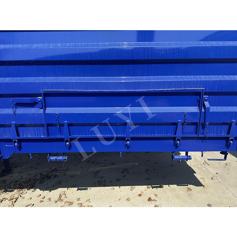 Der Anhänger misst 12500×2500×1600 mm, ist mit 3 Achsen (je 13 Tonnen) und einem mechanischen Federungssystem ausgestattet, um eine reibungslose Fahrt und zuverlässige Lastaufnahme zu gewährleisten. Es ist mit einem standardmäßigen 28-Tonnen-Fahrwerk für sichere Be- und Entladevorgänge sowie Reifen in den Spezifikationen 12R22.5/12.00R20/11R22.5 ausgestattet, um sich an unterschiedliche Straßenbedingungen anzupassen. Darüber hinaus erhöhen die 90×13×10 mm großen Blattfedern die Tragfähigkeit, die mechanische Leiter verbessert den Bedienkomfort und die Farben können nach Bedarf angepasst werden, was eine flexible und zuverlässige maßgeschneiderte Lösung für Logistik und Transport darstellt.