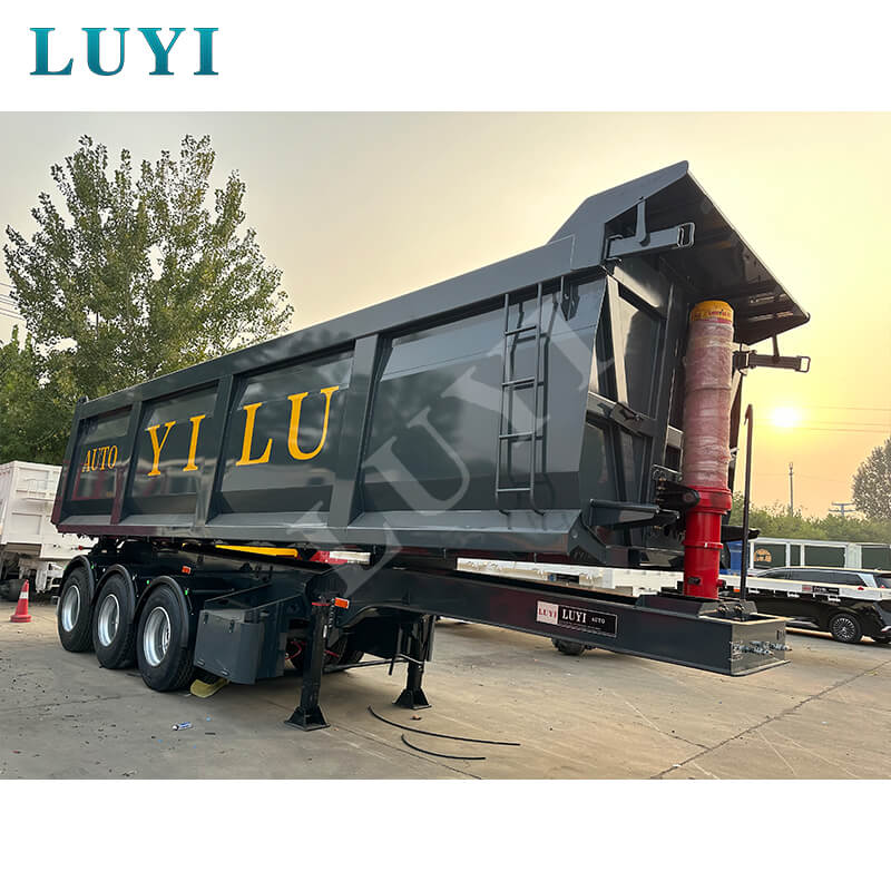 Mithilfe eines hydraulischen Hebesystems kann die Ladebox zum Entladen um 45–60° nach hinten gekippt werden. Das Hecköffnungsdesign macht die Bedienung einfach und effizient und ermöglicht eine kurze Entladezeit. Ausgestattet mit Druckluftbremsen, mechanischer/Blattfederaufhängung und einem Standard-Zugbolzen ist es mit den meisten Schwerlasttraktoren kompatibel und weist niedrige Wartungskosten auf. Die schwarze Beschichtung ist schmutzabweisend und pflegeleicht. Ob für den Kurzstreckentransport von Materialien wie Kohle, Erz und Kies oder für den konformen Ferntransport auf der Straße, es ist ein zuverlässiger und effizienter Transportpartner.