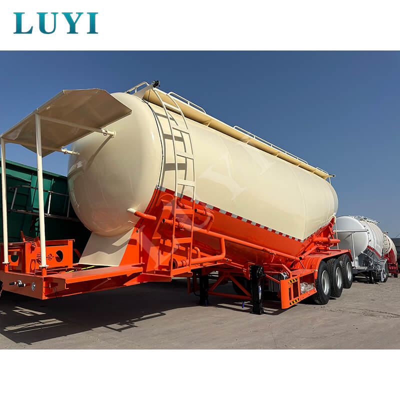 Der 3-achsige 40-Kubikmeter-V-Typ-Zementtankauflieger von LUYI, Provinz Shandong, China, ist aus hochwertigem Stahl gefertigt und befindet sich in einem brandneuen Zustand. Es ist speziell für den Transport von Zementpulver in großen Mengen konzipiert, mit einer maximalen Nutzlast von über 30.000 Kilogramm und einer hohen Tragfähigkeit.