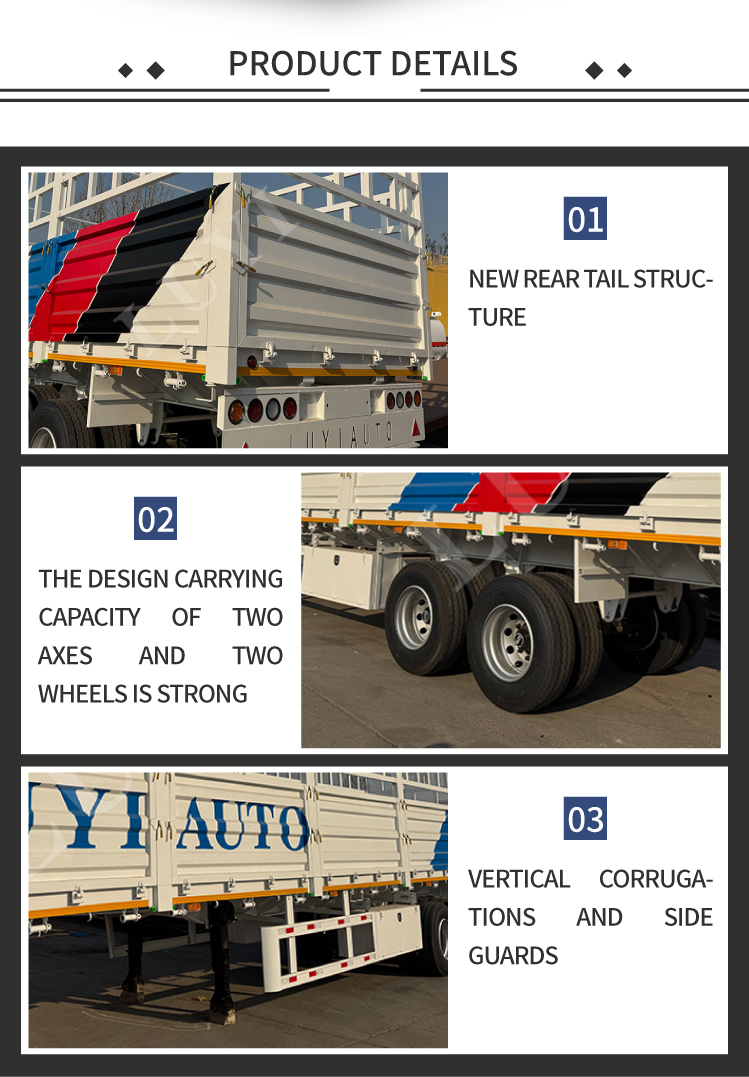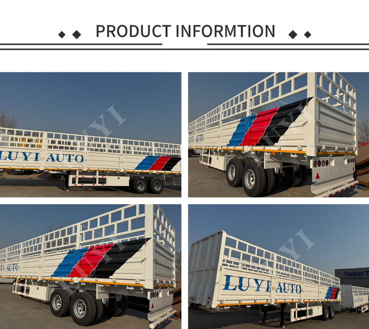 Der neu entwickelte 2-Achs-Sattelauflieger mit hohen Zaunseitenwänden von LUYI bietet zwei Ladekapazitäten von 30 und 60 Tonnen und ist damit perfekt für den mittleren und schweren Frachtbedarf wie Baumaterialien, Industrieausrüstung und landwirtschaftliche Produkte geeignet. Die hohe Zaunstruktur verhindert effektiv das Verschütten von Ladung während des Transports, während Sie mit den anpassbaren Funktionen die Zaunhöhe, das Transportmaterial und die rutschfesten Böden genau an Ihre Anforderungen anpassen können. Dieser vielseitige, maßgeschneiderte Anhänger ist jetzt zum Verkauf verfügbar und eignet sich gleichermaßen für Logistikunternehmen und Frachtunternehmen.