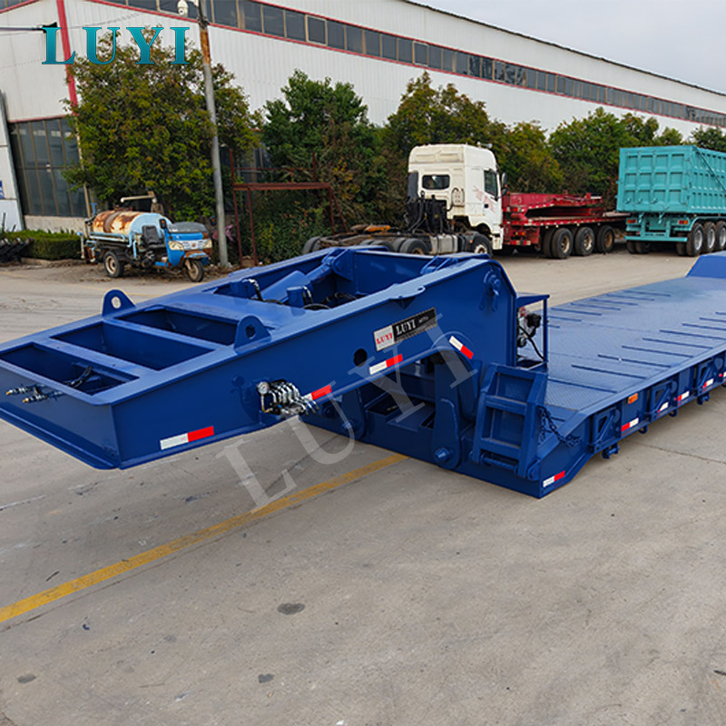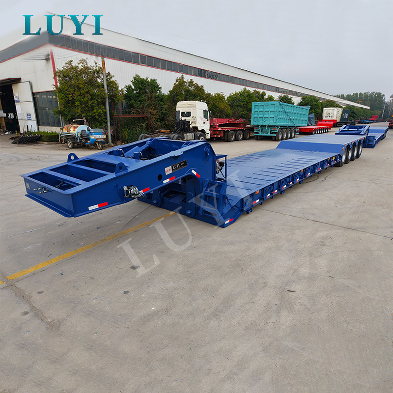 Was die Designdetails angeht, berücksichtigen die 4-Achs-Tieflader von Luyi die natürliche Umgebung und die Einsatzszenarien von Burkina Faso vollständig. Die lokalen Klimaeigenschaften mit hohen Temperaturen und starkem Sandstaub stellen höhere Anforderungen an die Verschleißfestigkeit von Fahrzeugteilen. Daher ist das Bremssystem der 4-Achs-Tiefbettauflieger auf hochtemperaturbeständige Keramikbremsbeläge umgerüstet und die Reifen sind All-Terrain-Profilreifen mit Anti-Aging- und Anti-Pannen-Funktion. Selbst bei Fahrten bei Sand- und Staubwetter oder Schotterstraßen bleibt das4-Achs-Tieflader-Aufliegerkann Bremsempfindlichkeit und Fahrstabilität gewährleisten. Zudem beträgt die Bodenfreiheit des Tiefbettaufbaus der 4-Achs-Tieflader nur 0,75 Meter. Mit der hydraulisch verstellbaren Heckplatte und den seitlichen Befestigungsvorrichtungen können die 4-Achs-Tieflader-Sattelauflieger das Be- und Entladen großer Geräte durchführen, ohne auf große Kräne angewiesen zu sein. Dadurch verkürzt sich die Lade- und Entladezeit von 2 Stunden bei herkömmlichen Fahrzeugen auf 40 Minuten und die Effizienz des Materialumschlags bei Infrastrukturprojekten wird erheblich verbessert.