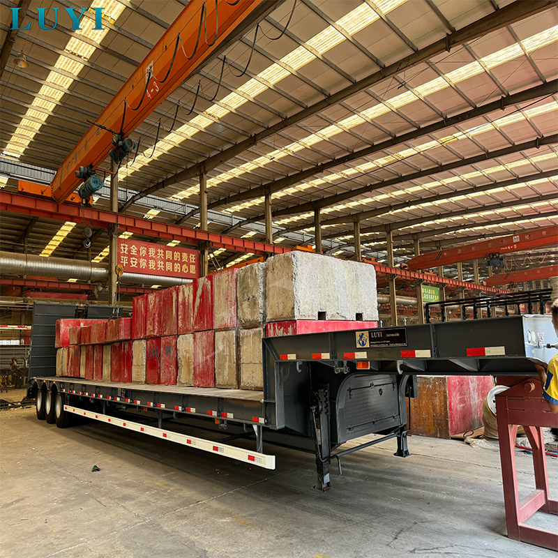 Der wichtigste Teil der Inspektion – die 100-Tonnen-Lastdemonstration – sah die3-Achs-Schwanenhals-Tieflader-Sattelaufliegerim Mittelpunkt stehen. In der Werkstatt wurden mit Gewichten gekennzeichnete schwere Gegenstände mit Kränen geordnet auf die Ladefläche des 3-Achs-Schwanenhals-Tiefladers gehoben. Als die Last zunahm, überwachten die Kunden genau die Rahmenverformung, den Reifendruck und die Rückmeldung des Federungssystems des dreiachsigen Schwanenhals-Tiefladers. Am Ende hielt der dreiachsige Schwanenhals-Tieflader-Auflieger das 100-Tonnen-Gewicht ohne nennenswerte Verformung des Aufbaus stabil aus, und die Federung und die Achsen arbeiteten stabil. Es bewies seine Tragfähigkeit mit Stärke und gewann die Anerkennung der Kunden.