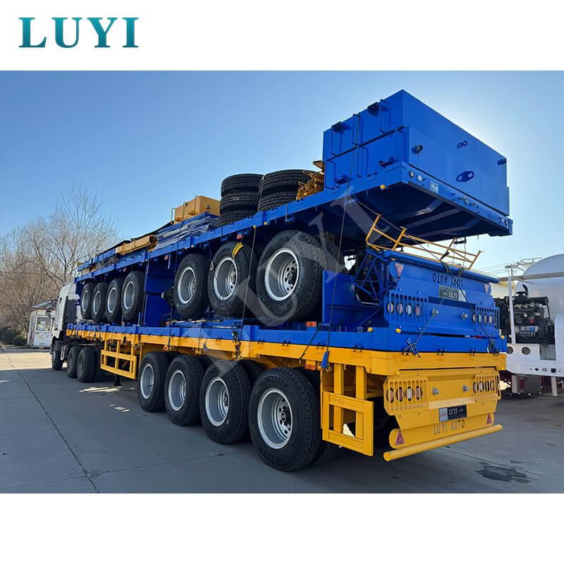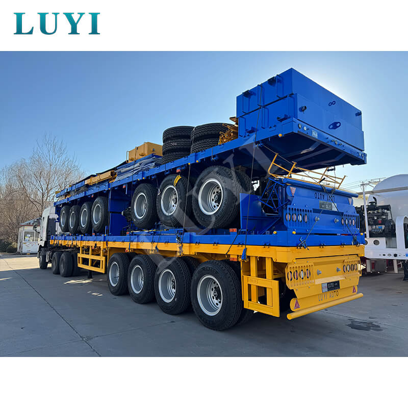 Der aus China stammende LUCKIN 3-Achs-40-Fuß-Flachbett-Containerauflieger wurde speziell für den LKW-Abschleppdienst entwickelt und ist somit die ideale Wahl für den Containertransport. Es besteht aus hochfestem Stahl, misst 12500 mm × 2500 mm × 1500 mm und verfügt über eine robuste und langlebige Struktur.