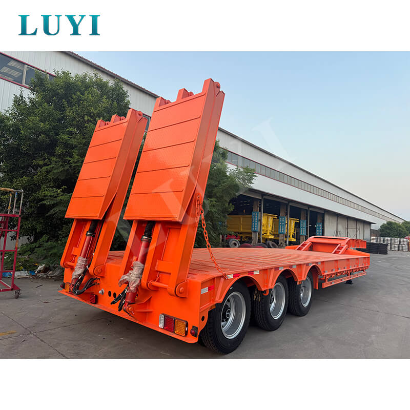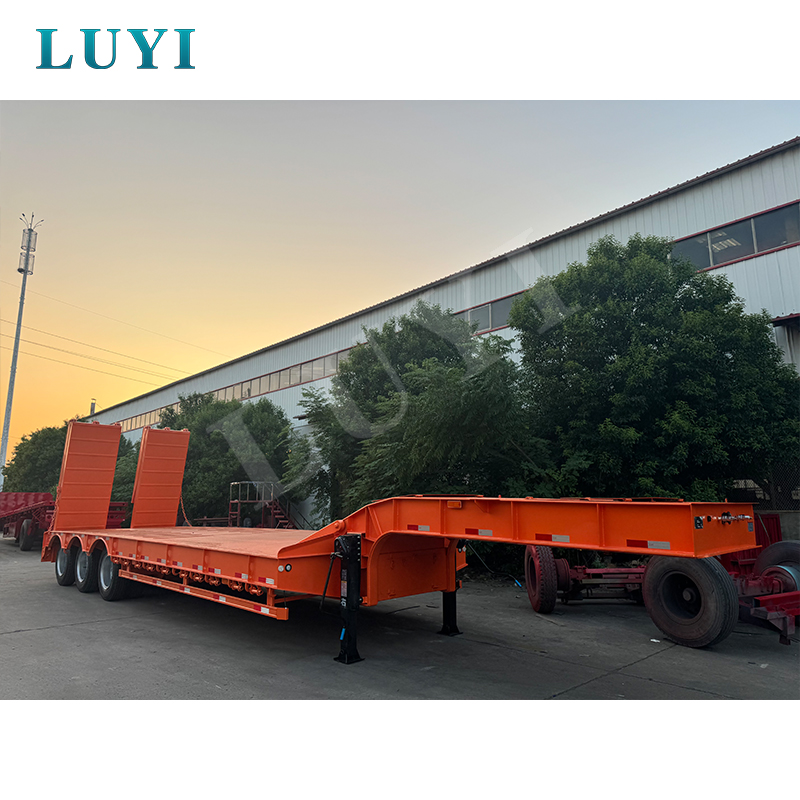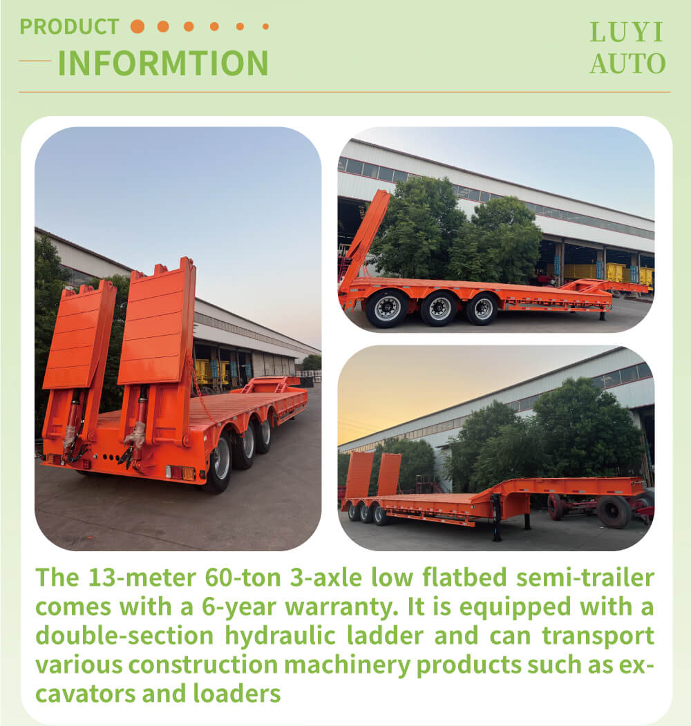 Der 3-achsige 60-Tonnen-Tieflader mit abnehmbarem Schwanenhals von LUYI, hergestellt in Shandong, China, ist ein professioneller Frachtanhänger. Sein Körper besteht aus hochfestem Stahl mit den Abmessungen 1700030001500 mm. Die Struktur ist robust und bietet ausreichend Platz, was eine stabile Beladung schwerer Ladung und die Anpassung an verschiedene LKW-Traktionsvorgänge ermöglicht.