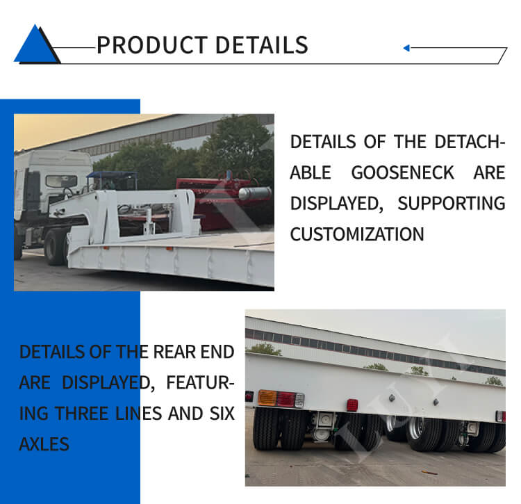 Im Detail ist er mit einem standardmäßigen 28-Tonnen-Fahrwerk ausgestattet und verfügt über JOST-Königsbolzen in zwei Optionen: 2" (50 mm) oder 3,5" (90 mm) zur Anpassung an verschiedene Traktoren. Die Gehäusefarbe kann vom Kunden individuell angepasst werden, und das faltbare Schwanenhalsdesign erhöht die Transportflexibilität zusätzlich. Es ist eine ideale Wahl für den Transport schwerer Geräte im Maschinenbau, im Bergbau und in anderen Bereichen.